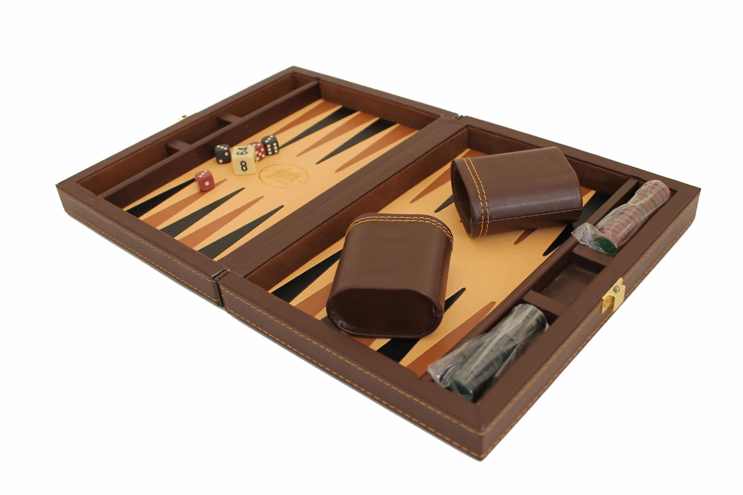 Backgammon Lounge – Similicuir Brun Italien de Voyage Pliant et Magnétique