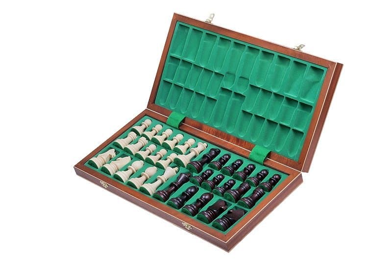 Le combo professionnel tournois n°7 – Jeu d’Echecs en Bois de Charme et de Hêtre + Echiquier Pliant en Bois d’Acajou et D’Erable est le jeu parfait pour les échecs professionnels. Les pièces d’échecs Staunton n°7 lestées sont faites de bois de charme, et le joli échiquier pliant est incrusté de bois d’acajou et de sycomore. Il possède un plateau d’insertion pour le rangement des pièces d’échecs à l’intérieur. La finition est exquise et la qualité est remarquable. Un design léger et élégant avec des pièces sculptées à la main et des points d’insertion pour les arrêter. Ce combo professionnel tournois n°7 est une parfaite combinaison de style et de qualité. Offrez-vous ce jeu à un prix convaincant et profitez d’une partie d’échecs amusante et compétitive. Ce jeu est le choix parfait pour les amateurs et les professionnels avertis. Achetez-le dès aujourd’hui pour bénéficier de ce jeu d’échecs de tournoi de qualité.