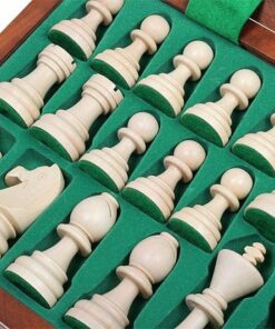 Combo Professionnel Tournois n°7 – Jeu d’Echecs en Bois de Charme et de Hêtre + Echiquier Pliant en Bois d’Acajou et D’Erable: le Parfait Cadeau pour les Amateurs d’Echecs!