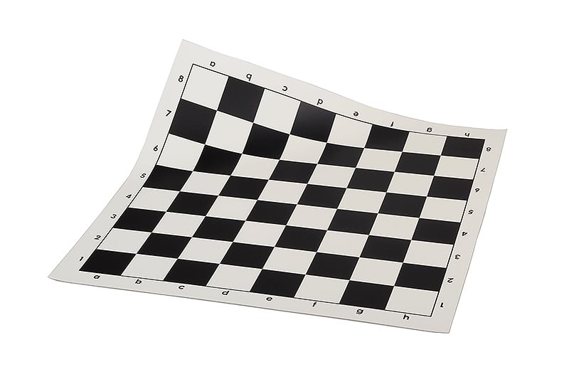 Cet échiquier de tournoi en vinyle est enroulable pour faciliter le transport et l’utilisation. La surface du plateau est imprimée en blanc et comporte des cases noires avec un marquage alphanumérique pour une pratique plus précise. Il est disponible en deux tailles, 43 x 43 cm avec des cases de 4,5 cm qui convient à une hauteur de roi de 8 cm et 51 x 51 cm avec des cases de 5,7 cm qui convient à une hauteur de roi de 9,8 cm. Ces échiquiers sont vendus sans pièces.