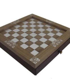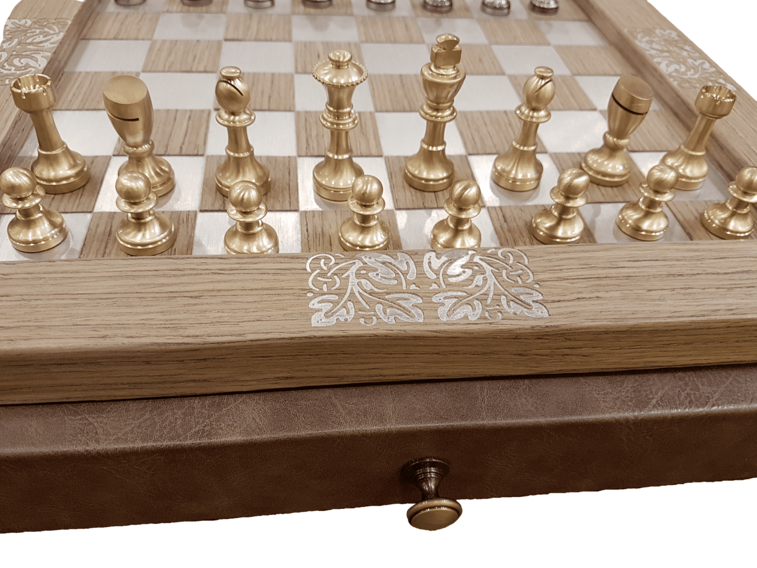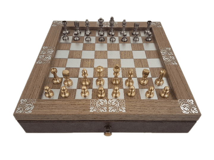 Ensemble Arabesque II Echiquier en Bois avec Tiroir de Rangement et Jeu d’Echecs Staunton en Laiton – Idéal pour Les Amateurs d’Echecs!