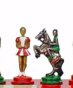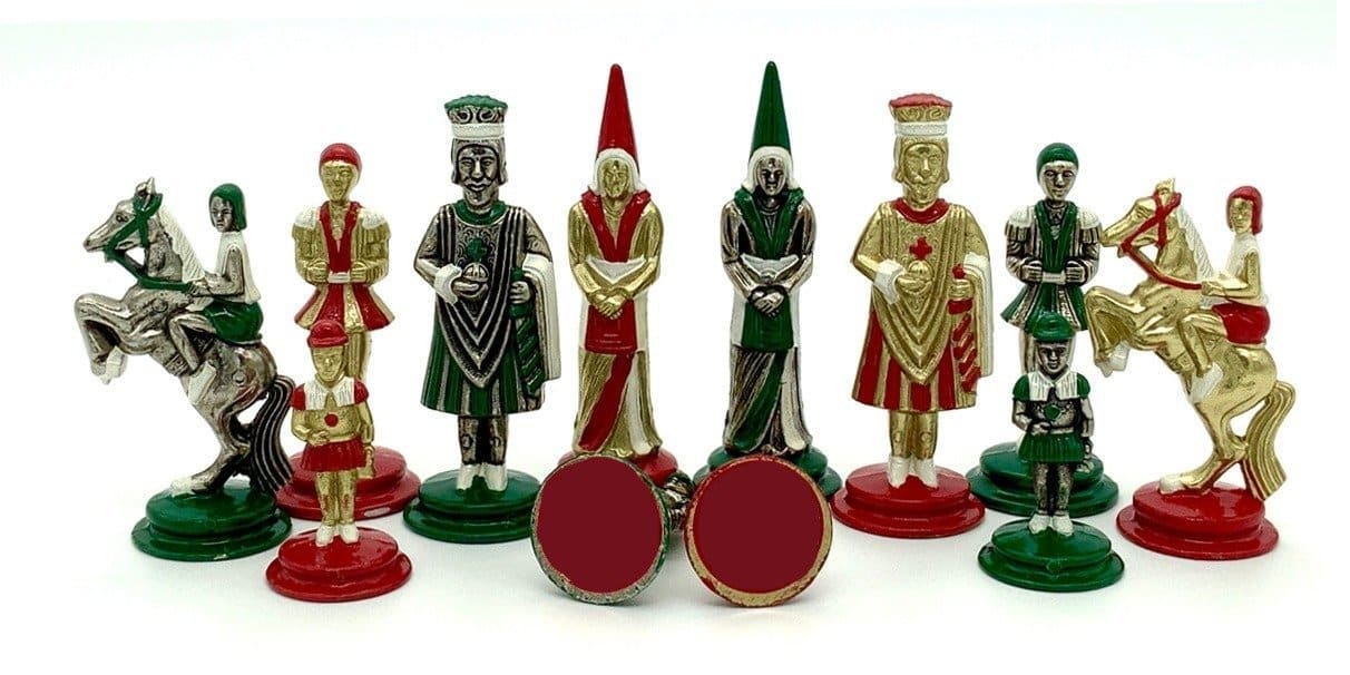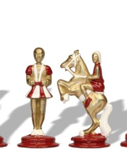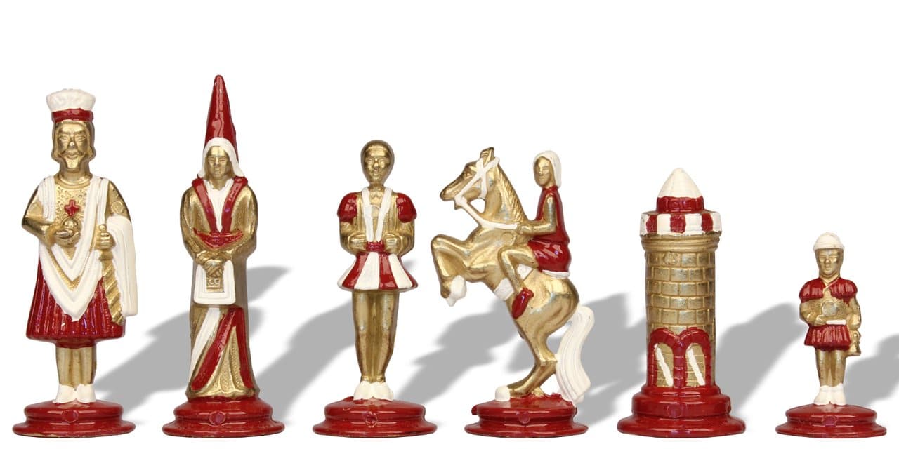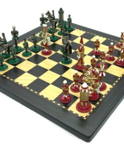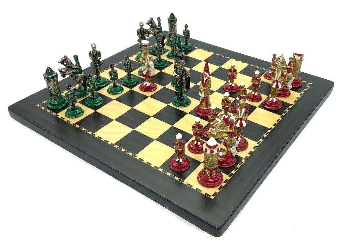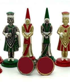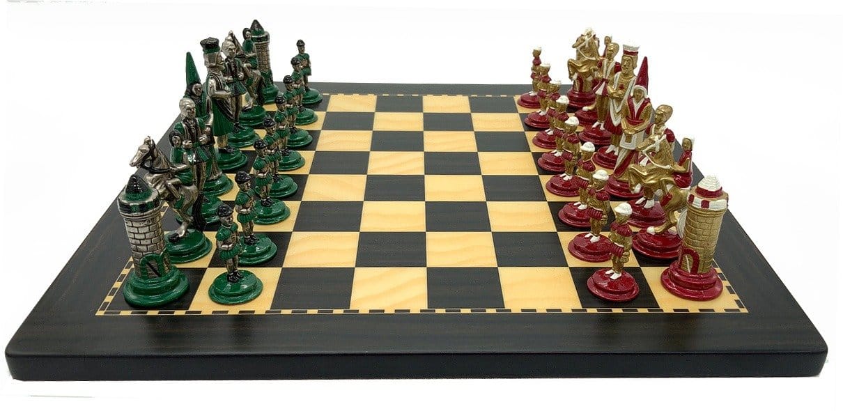 Ensemble Camelot Roi Arthur X – Echiquier en Bois et Pièces d’Echecs Médiévales Peintes à la Main