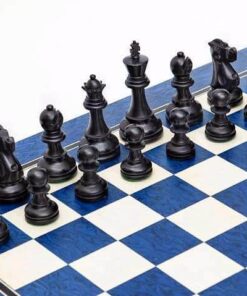 Découvrez l’ensemble de compétition Echiquier en Bois de Noyer et d’Erable, Jeu d’Echecs en Bois de Buis & Coffret de Rangement en Bois de Rose Doré. L’échiquier est fabriqué en bois de noyer et d’érable, mesurant 40 x 40 x 1,5 cm, avec des cases de 4,4 cm. Le jeu d’échecs est composé de 34 pièces (32 + 2 reines) en bois de buis, le plombage est présent et la hauteur du roi est de 7,6 cm, avec un diamètre de base du roi de 3,6 cm. Les pièces sont sculptées et polies à la main et la base est feutrée. Le coffret est fait en bois de rose doré avec une finition sombre et feutrée et un couvercle à charnière. Tous ces produits sont fabriqués en Europe. Offrez-vous ce