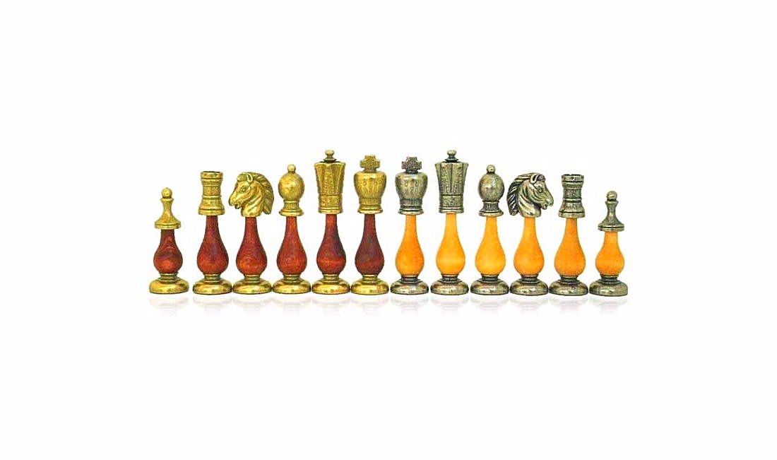 Avec l’Ensemble Arabic Style Table en Bois et Laiton & Jeu d’Echecs en Métal et Bois, votre jeu d’échecs est à la hauteur de vos ambitions. Fabriqué en Europe avec des matériaux de qualité, cet ensemble comprend une table magnifique avec un plateau en laiton et un grand échiquier en bois et laiton massif d’une taille de 51 x 51 cm. La table a une hauteur de 62 cm et les cases mesurent 4,6 cm. La finition est faite à la main et le plateau de jeu est doté d’un compartiment de rangement feutré intégré. Quant au jeu d’échecs, il est composé de 32 pièces en métal et en bois massif, avec un haut roi de 10 cm et un diamètre de base de 2,9 cm. La base est feutrée et chaque pièce est sculptée et ciselée à la main. Ne laissez pas passer