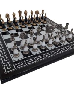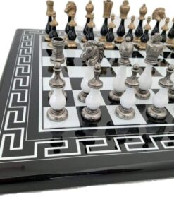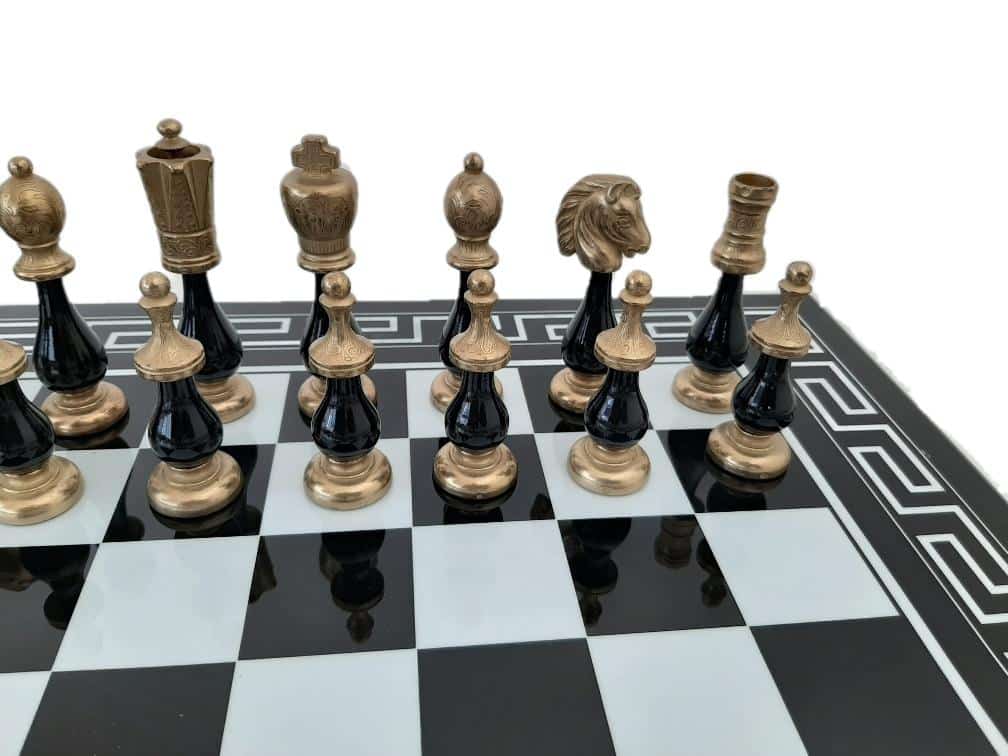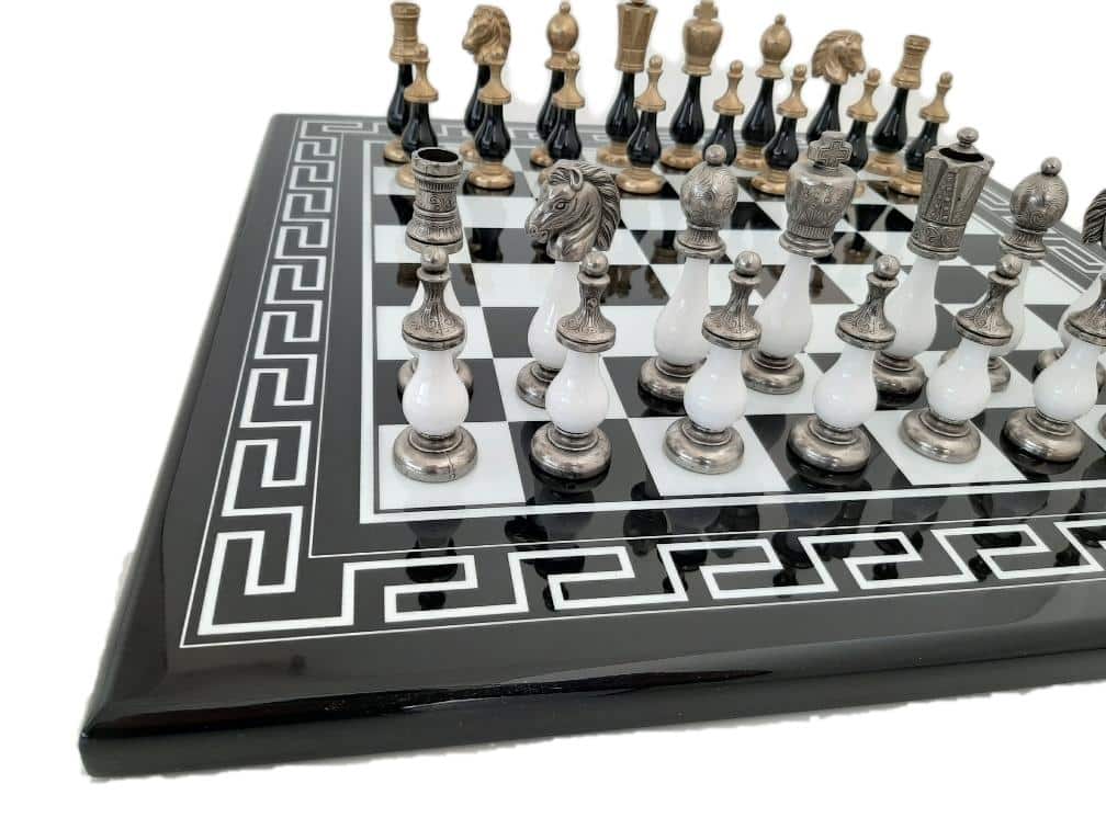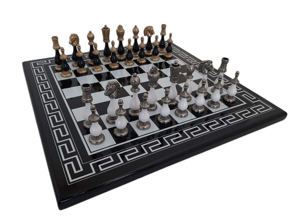 L’ensemble bicolore IV Noir et Blanc Echecs en Bois et Pièces Echecs en Métal et Bois est une magnifique pièce de collection. L’échiquier est fait de bois massif avec un style grec et un fini laqué brillant. Sa taille est de 50 x 50 x 2 cm et chaque case mesure 4,5 cm. La fabrication est européenne et durable. Le jeu d’échecs est fait de métal et de bois, avec un roi mesurant 10 cm de haut et un diamètre de base de 2,9 cm. Il comprend 32 pièces finies à la main. La fabrication est européenne, et la qualité est garantie. L’ensemble bicolore IV Noir et Blanc Echecs en Bois et Pièces Echecs en Métal et Bois est un produit de qualité qui ravira les joueurs d’échecs débutants et confirmés. Commandez le vôtre dès aujourd’hui