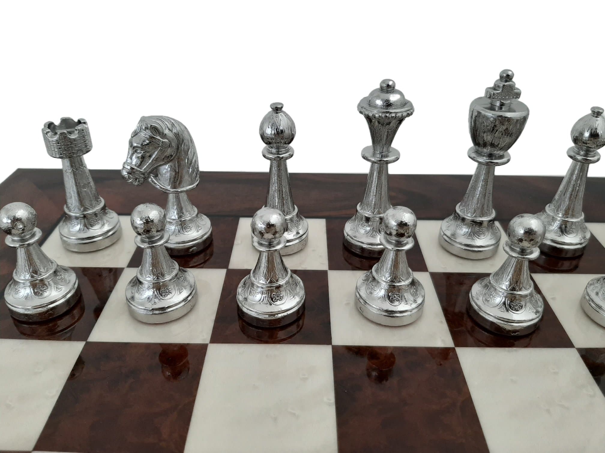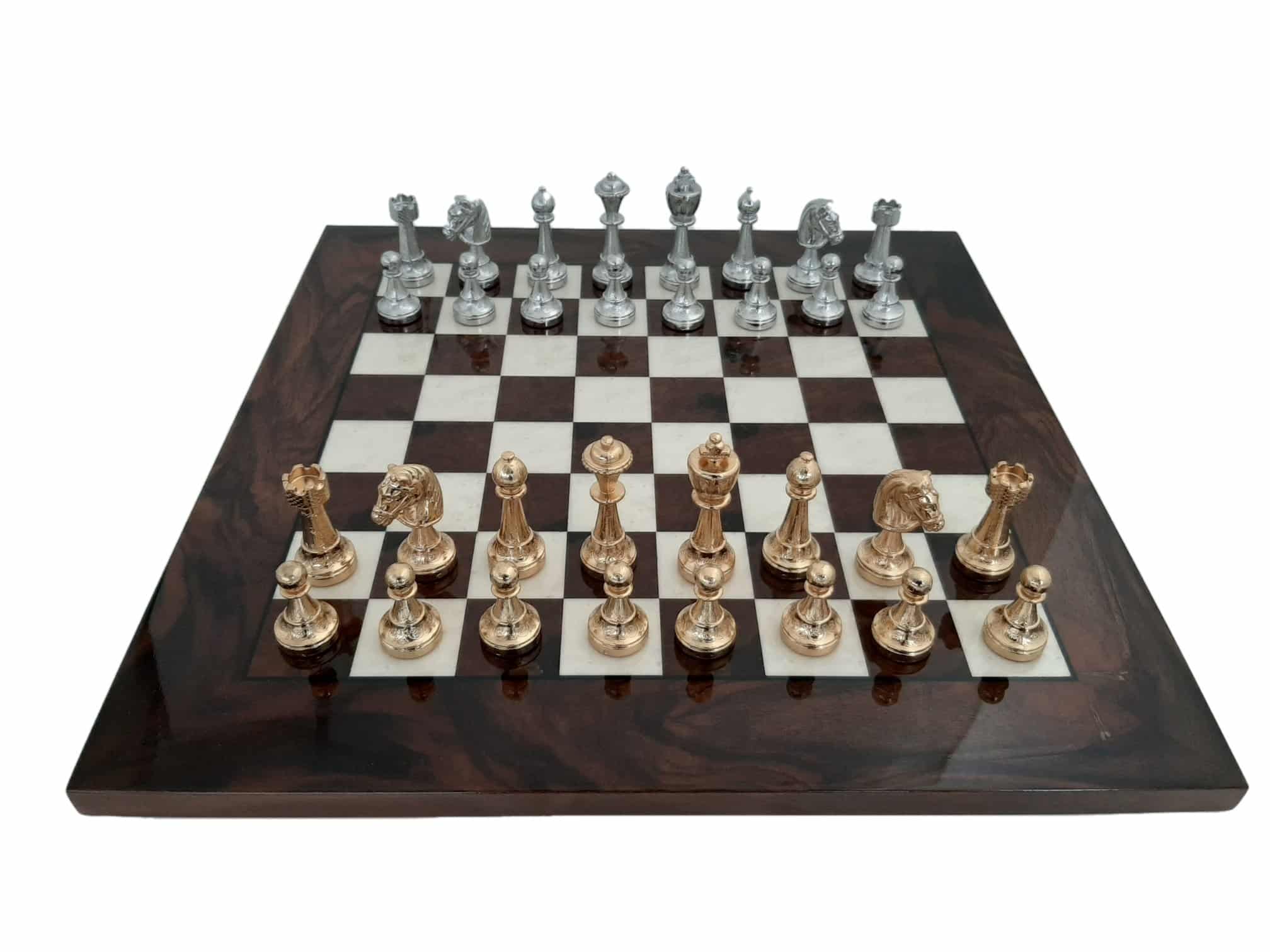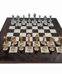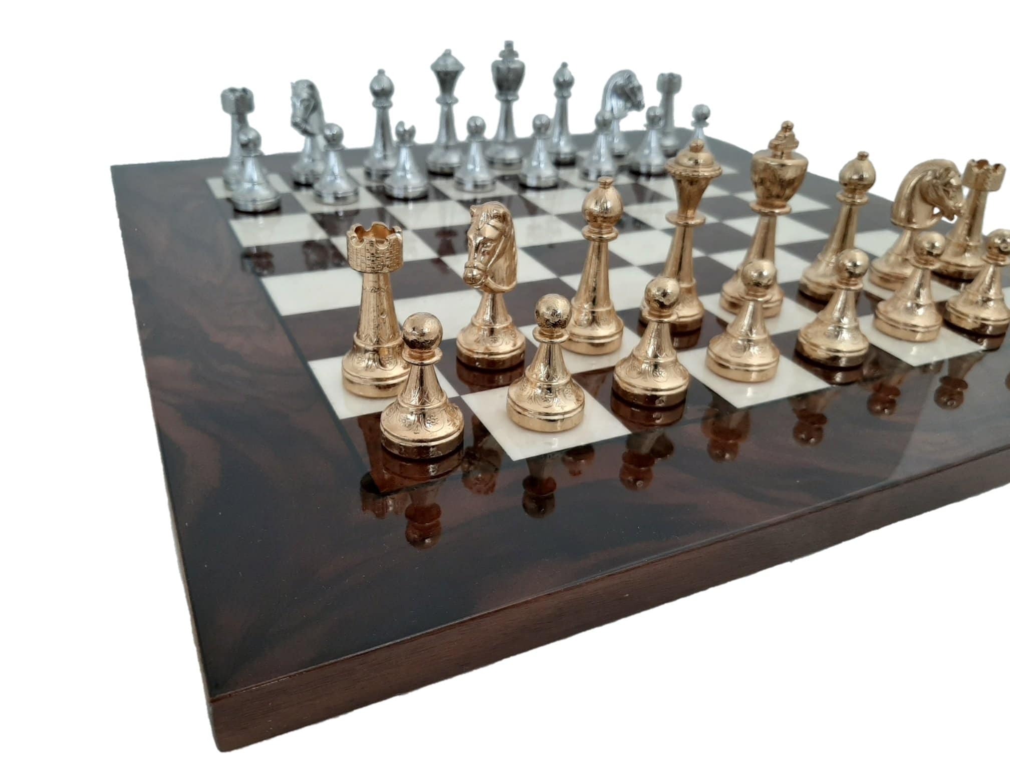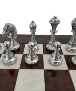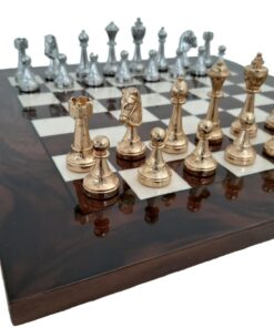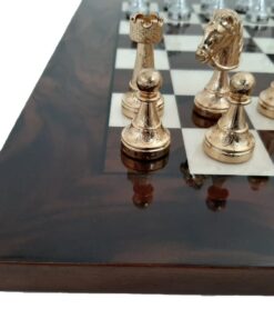 Ensemble d’Échecs Classique en Ronce de Noyer et Jeu de Métal Plaqué Or et Argent
