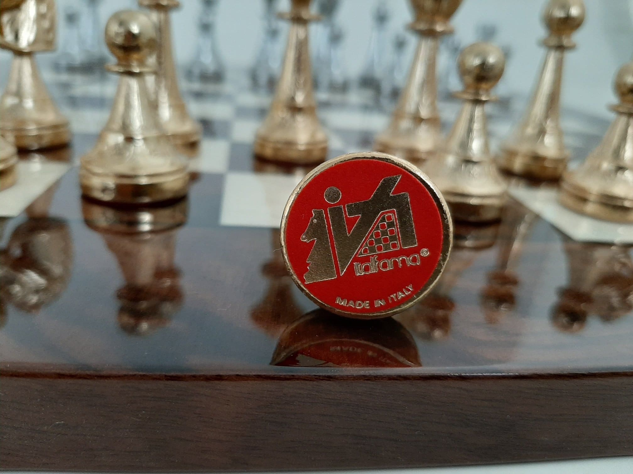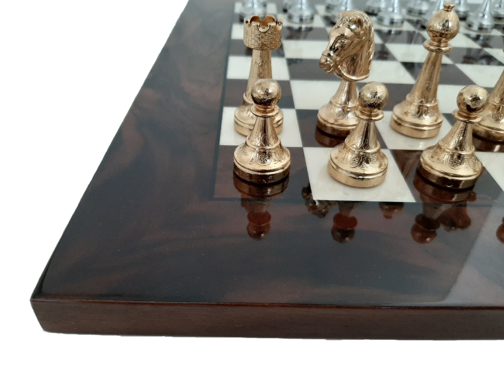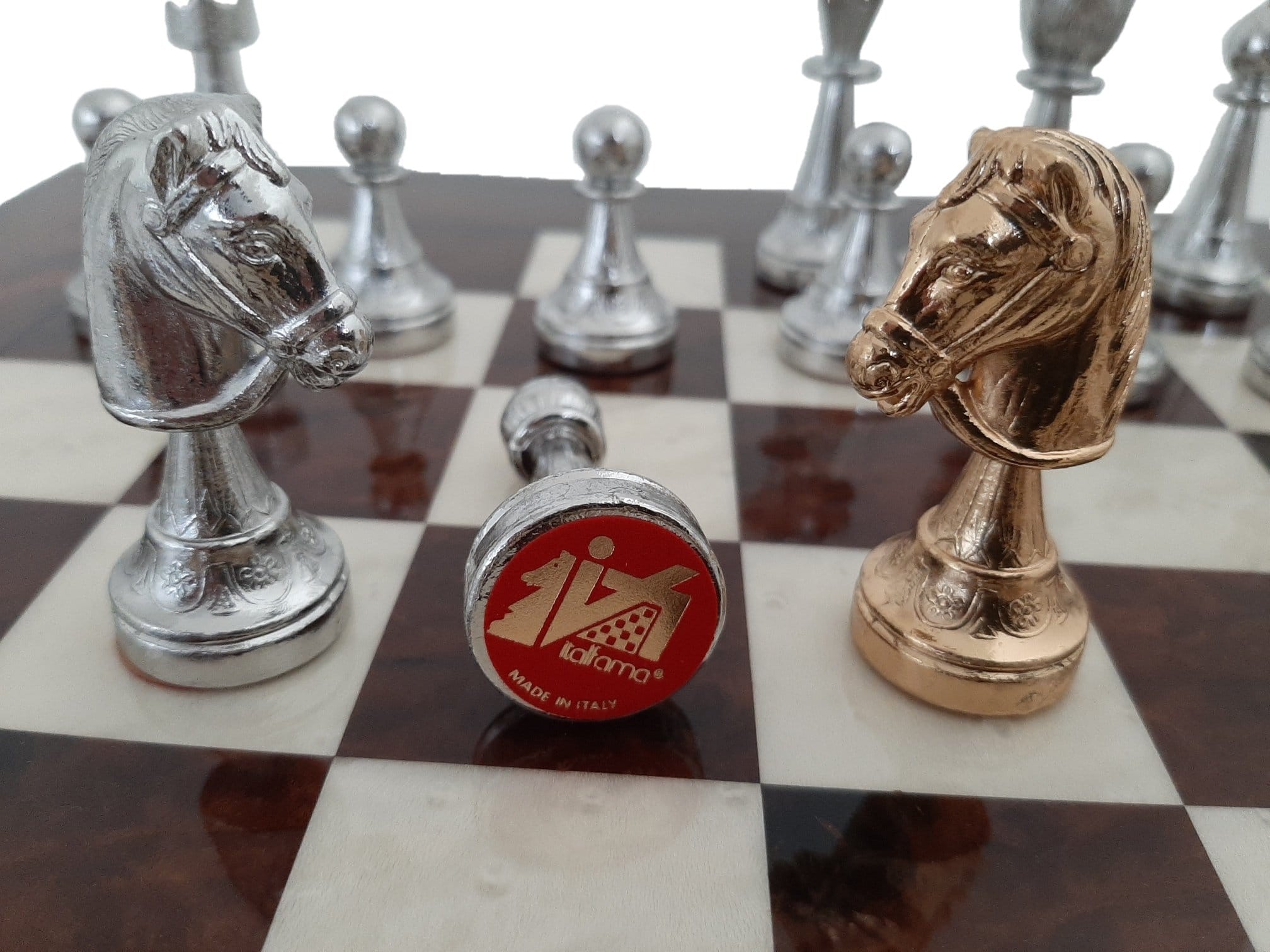 Ensemble d’Échecs Classique en Ronce de Noyer et Jeu de Métal Plaqué Or et Argent