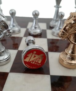 L’Ensemble Classic Flower 6 Echiquier en Ronce de Noyer et Jeu d’Echecs en Métal Plaqué Or et Argent est une œuvre d’art remarquable. Fabriqué en Europe, cet ensemble a été conçu avec des matériaux de qualité supérieure et des finitions exquises à la main. L’échiquier est fabriqué en ronce de noyer avec une taille de 42 x 42 cm et des cases de 4 cm. La finition est brillante et incrustée à la main. Le jeu d’échecs est en métal massif plaqué or et argent avec un haut roi de 7,5 cm et un diamètre de base du roi de 2,5 cm. Chaque pièce est sculptée, ciselée, laquée et plaquée or et argent à la main. La base est en feutre rouge. Cet ensemble est une pièce unique et unique qui offre une esthétique classique et intemporelle.