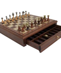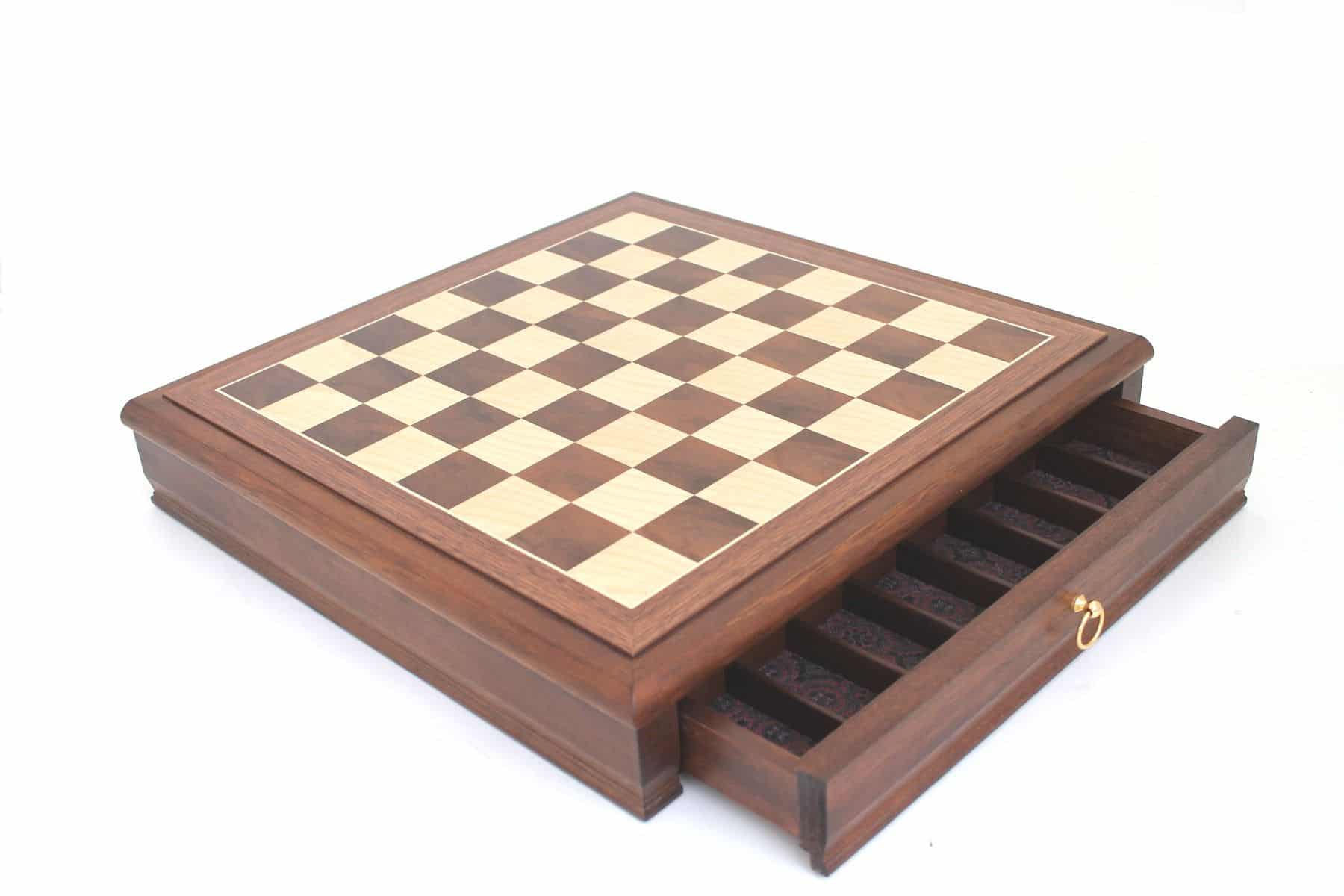 Ensemble Echiquier et Jeu d’Echec Windsor Cocoa Burl en Bois d’Ebène, d’Erable et de Buis