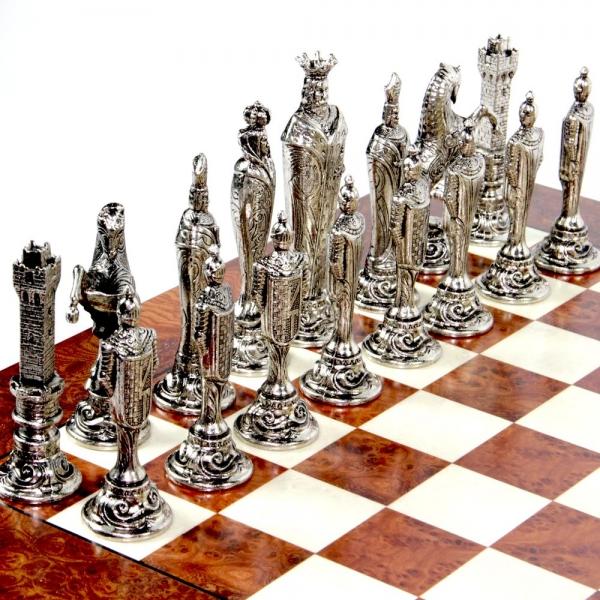 Ensemble d’Echecs Florentine Renaissance II en Bois d’Orme et Métal – Echiquier sur Pied et Jeu d’Echecs