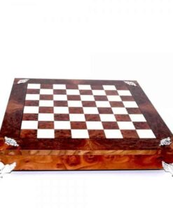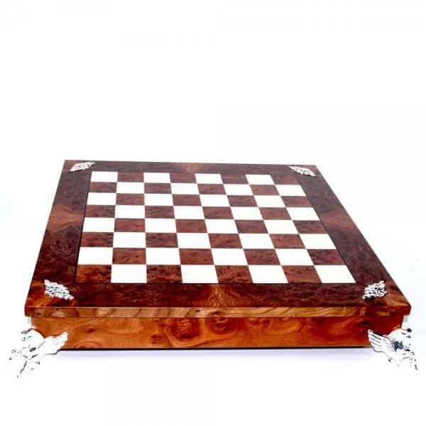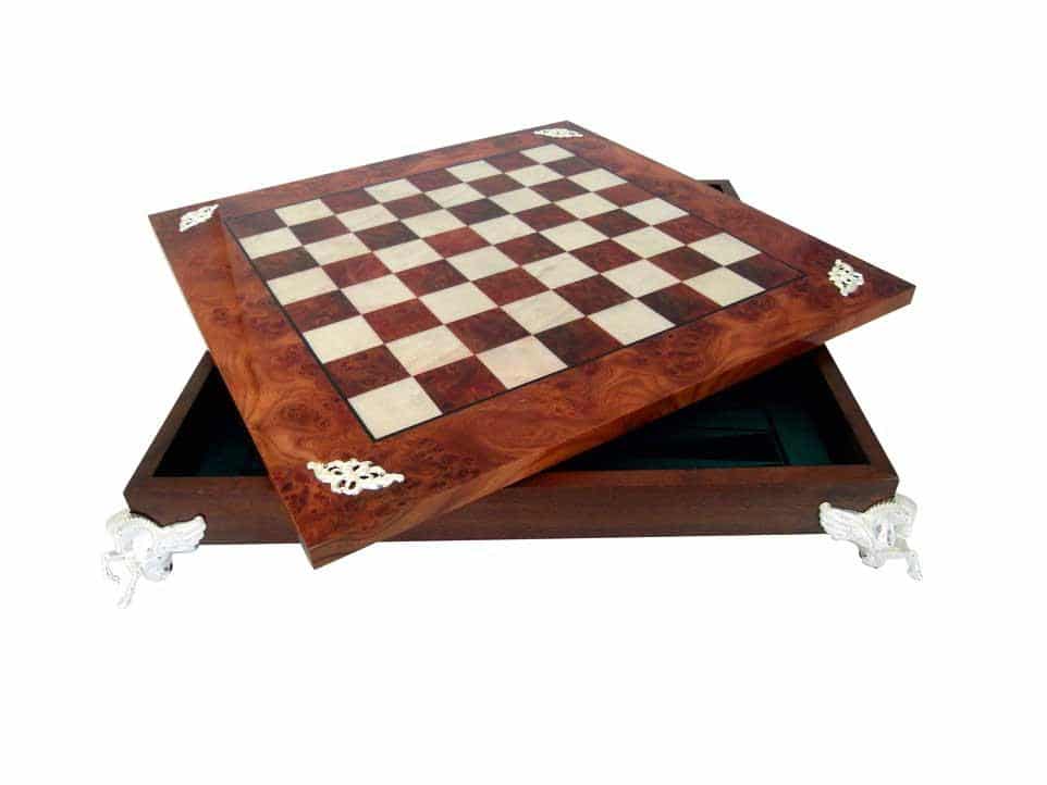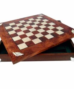 Ensemble Echiquier et Jeu d’Echec Windsor Cocoa Burl en Bois d’Ebène, d’Erable et de Buis