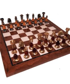 Ensemble Echiquier et Jeu d’Echec Windsor Cocoa Burl en Bois d’Ebène, d’Erable et de Buis