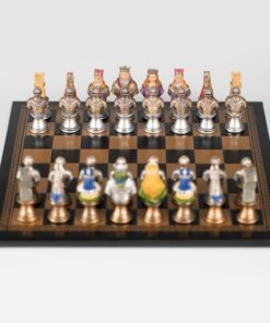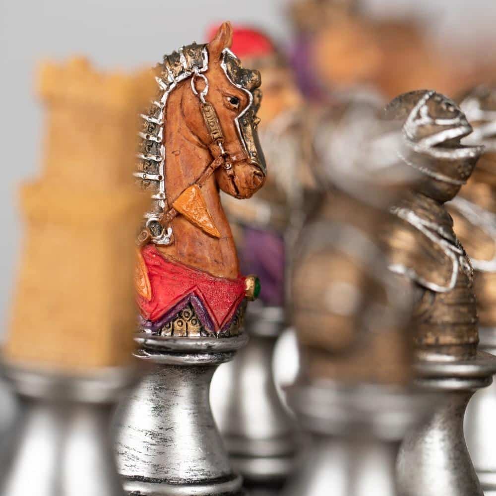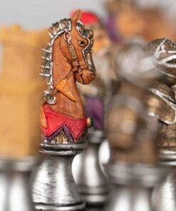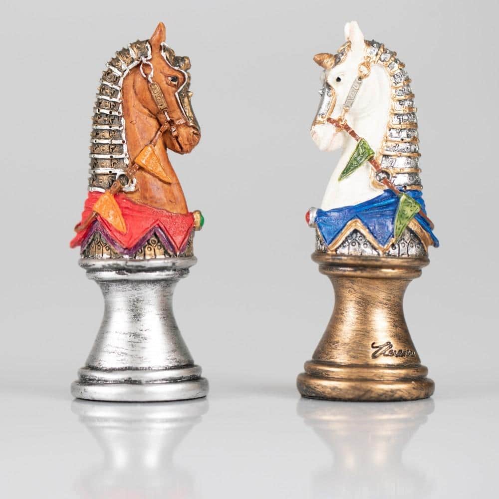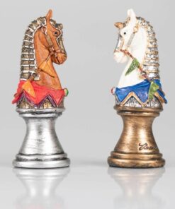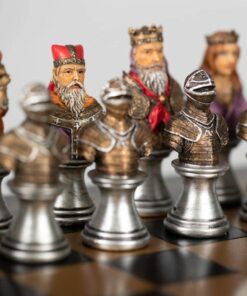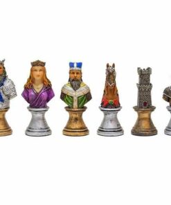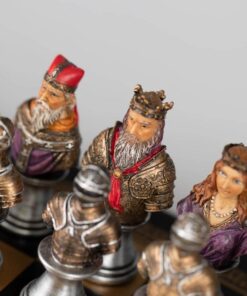 L’ensemble Buste Médieval II Echiquier Noir et Doré en Similicuir et Jeu d’Echecs en Résine Peint à la Main est un jeu magnifique qui ravira les amateurs d’échecs. L’échiquier est fait en similicuir, 33 x 33 x 1,5 cm avec des cases de 3,5 cm, incrustées à la main et fabriqué en Europe. Le jeu d’échecs est fait en résine, avec un roi de 8 cm de hauteur, 32 pièces à sa base et un travail de sculpture et de peinture à la main. La fabrication est européenne. Ce jeu offre une expérience d’échecs à couper le souffle, avec des pièces et un échiquier à la fois distingués et raffinés. Il sera un excellent cadeau pour les amateurs d’échecs. Commandez votre Ensemble Buste Médieval II Echiquier Noir et Doré en Sim
