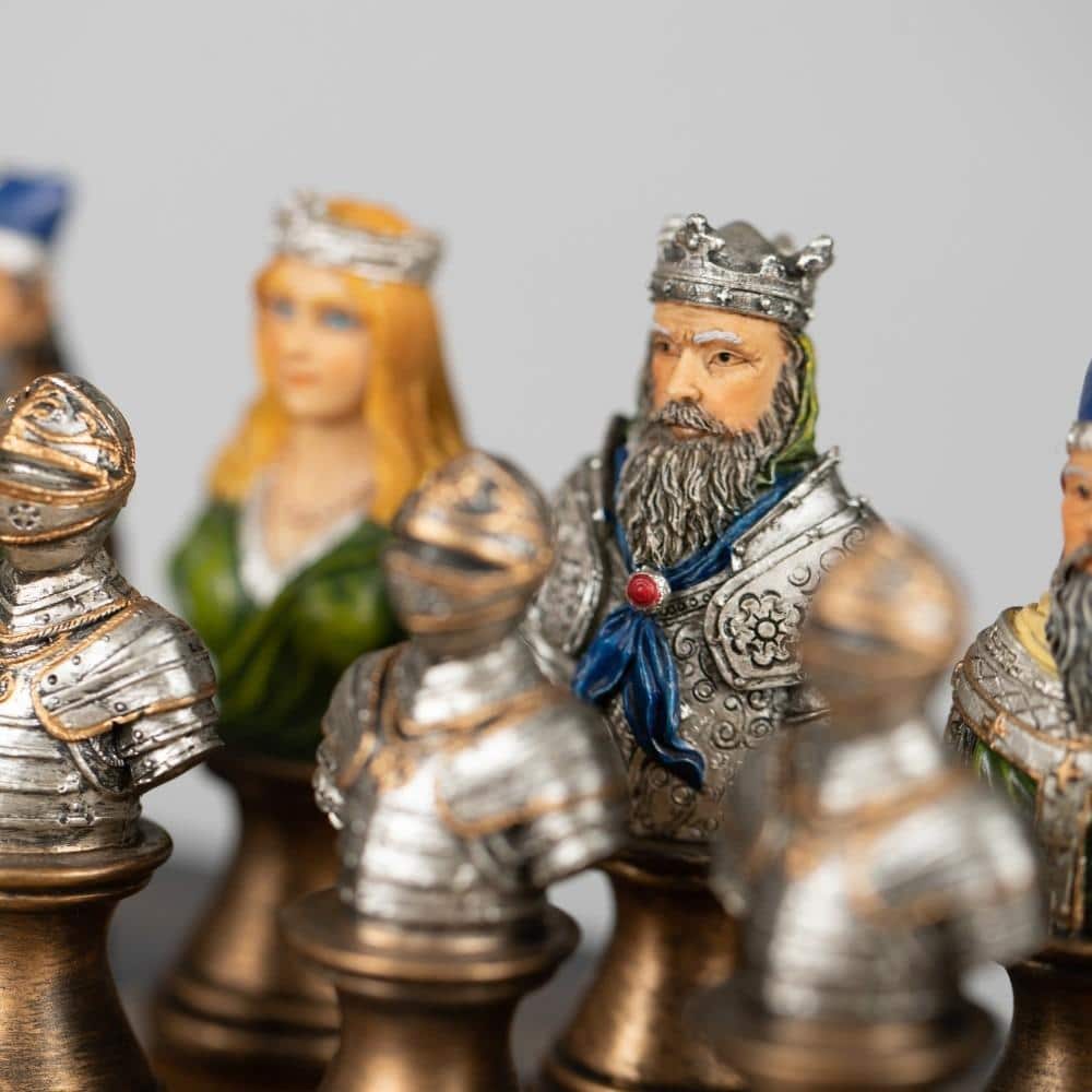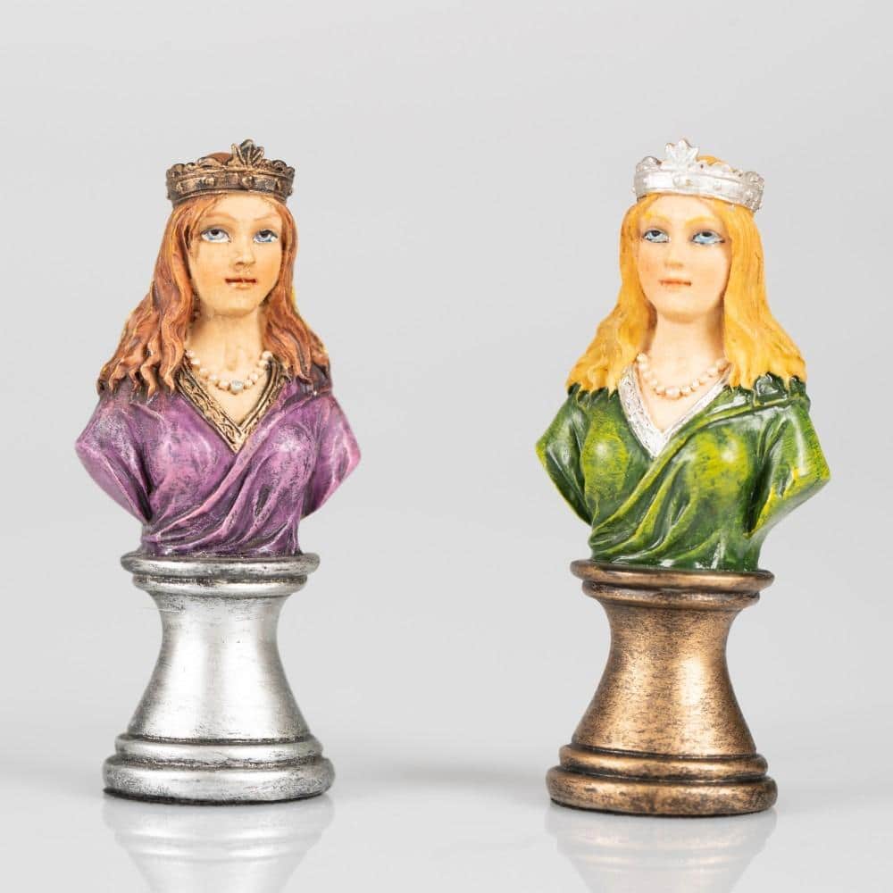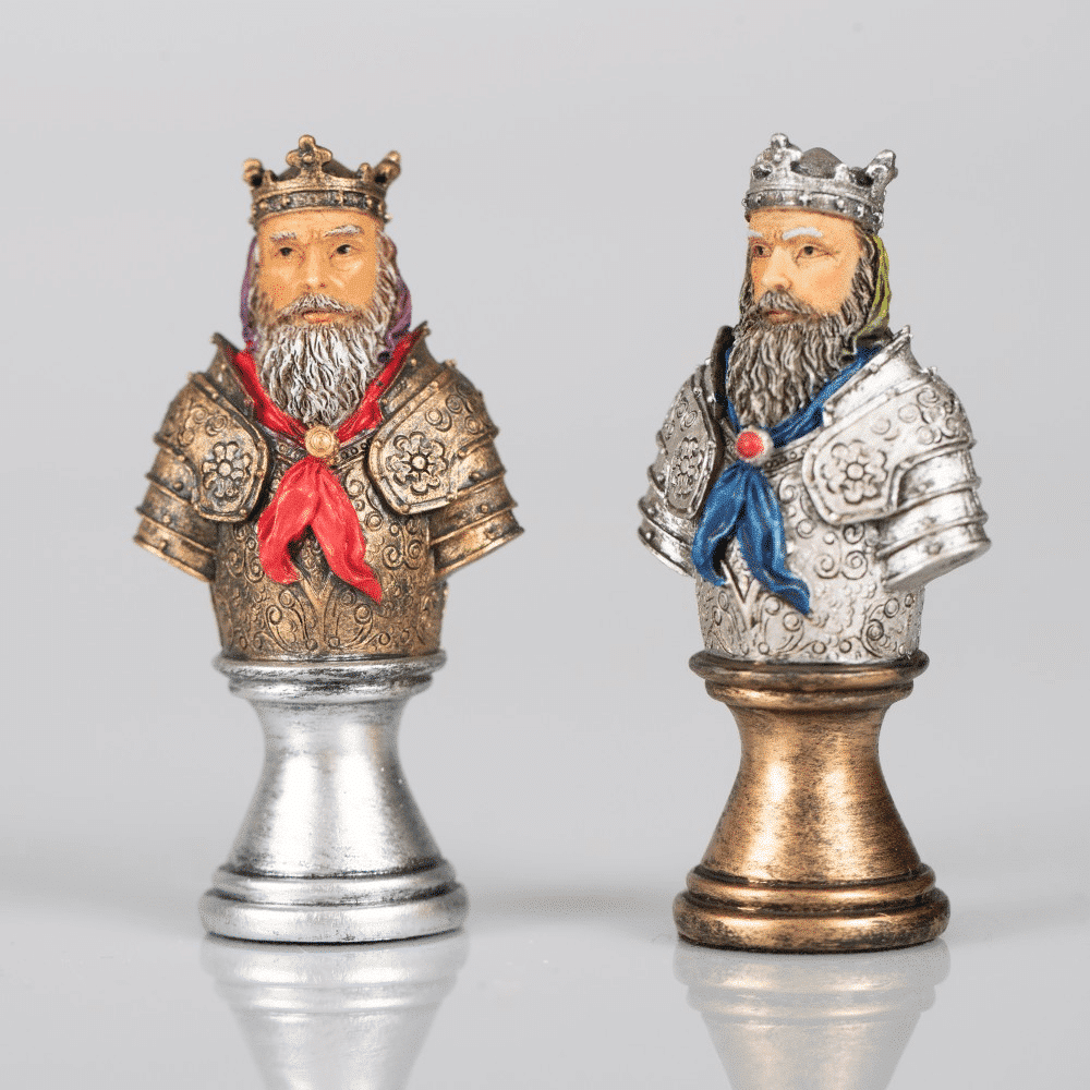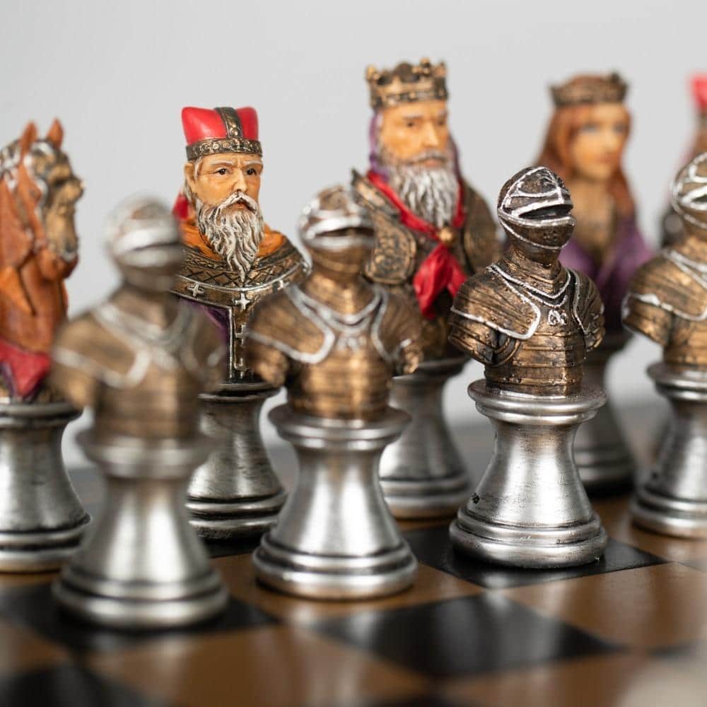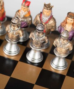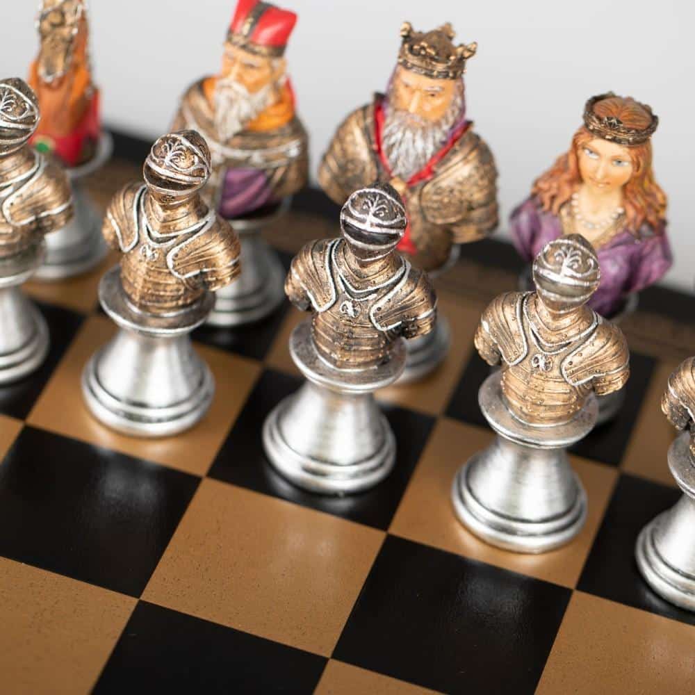 Ensemble d’Echecs Médieval en Similicuir et Résine Peint à la Main – Buste Noir et Doré II