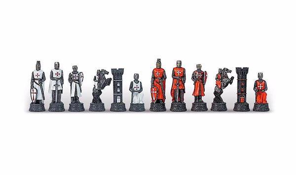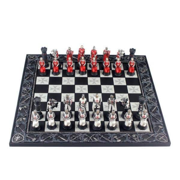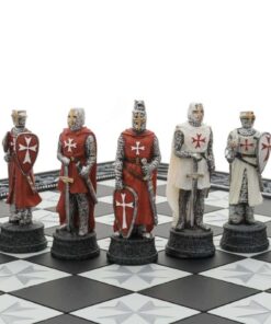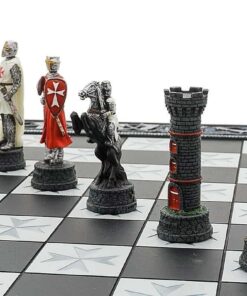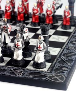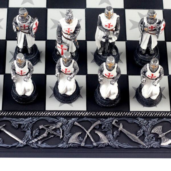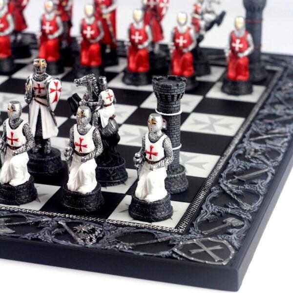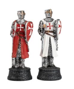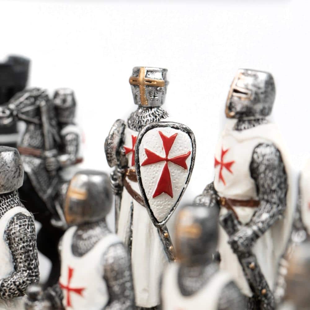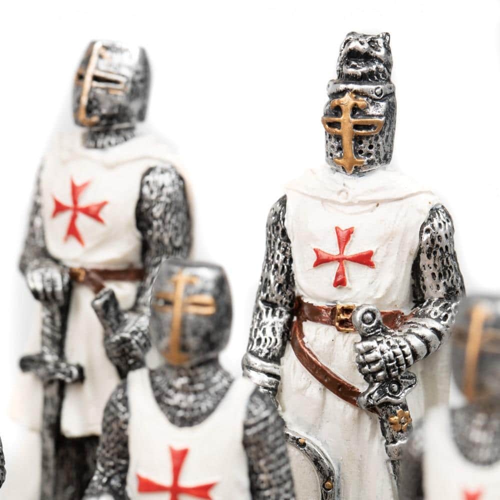 Ensemble d’Echecs Templier en Résine Sculptée et Peinte à la Main