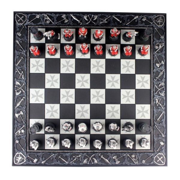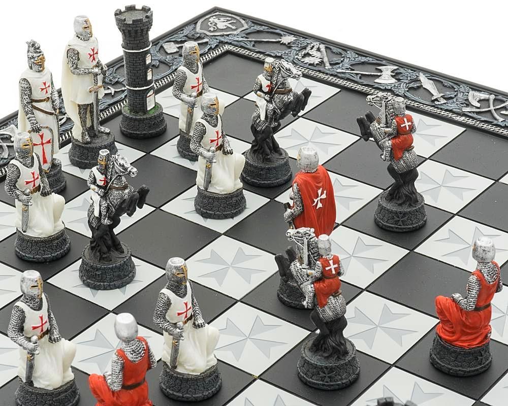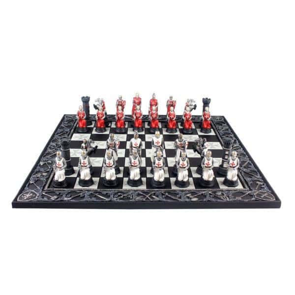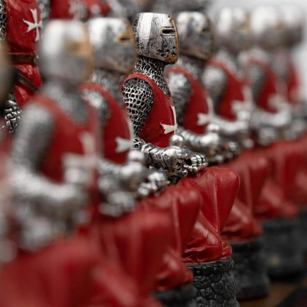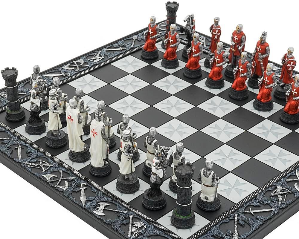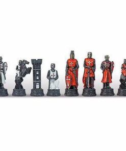 Ensemble d’Echecs Templier en Résine Sculptée et Peinte à la Main