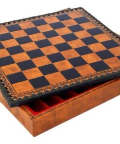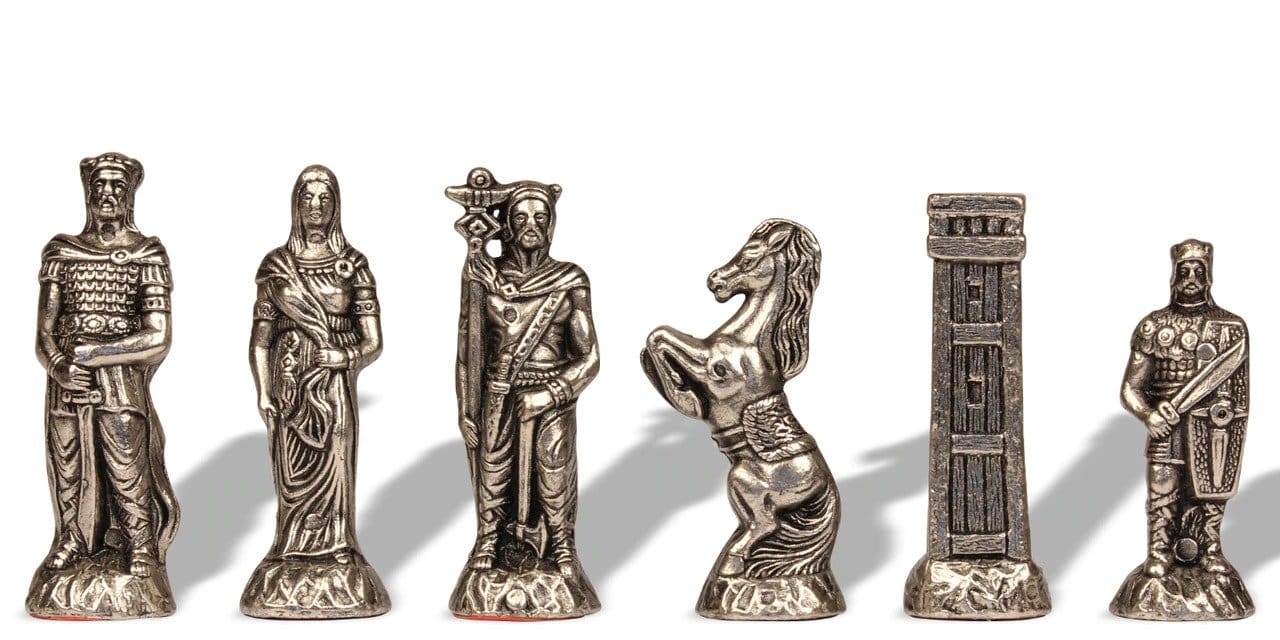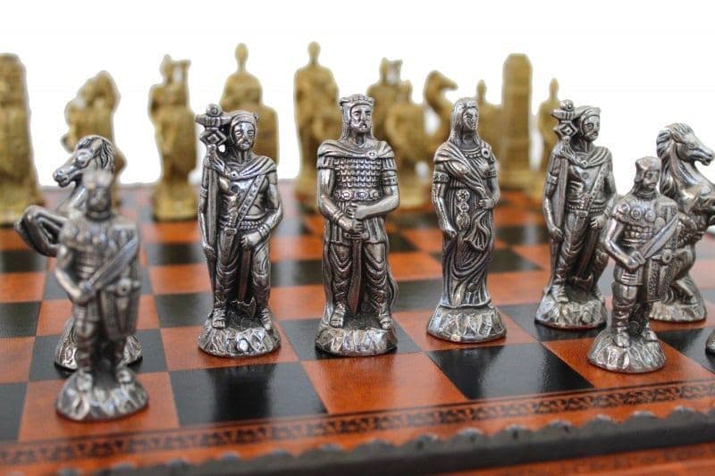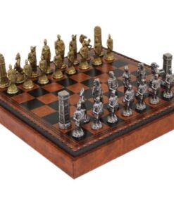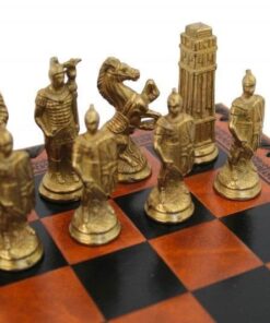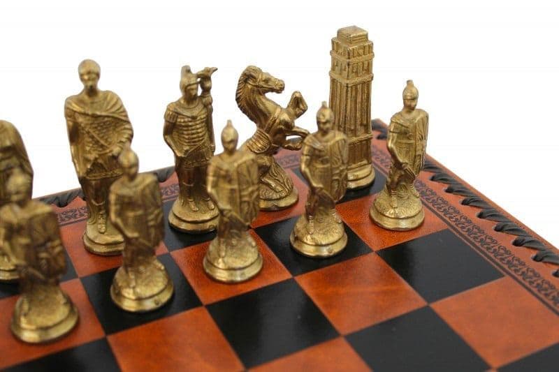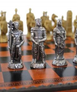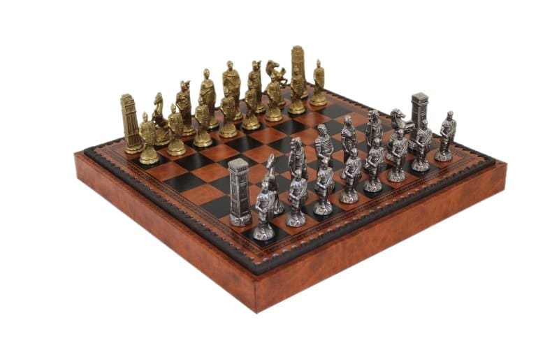 Ensemble d’Échiquier Romains vs Barbares VII en Similicuir et Figurines en Métal, avec Rangement Intégré