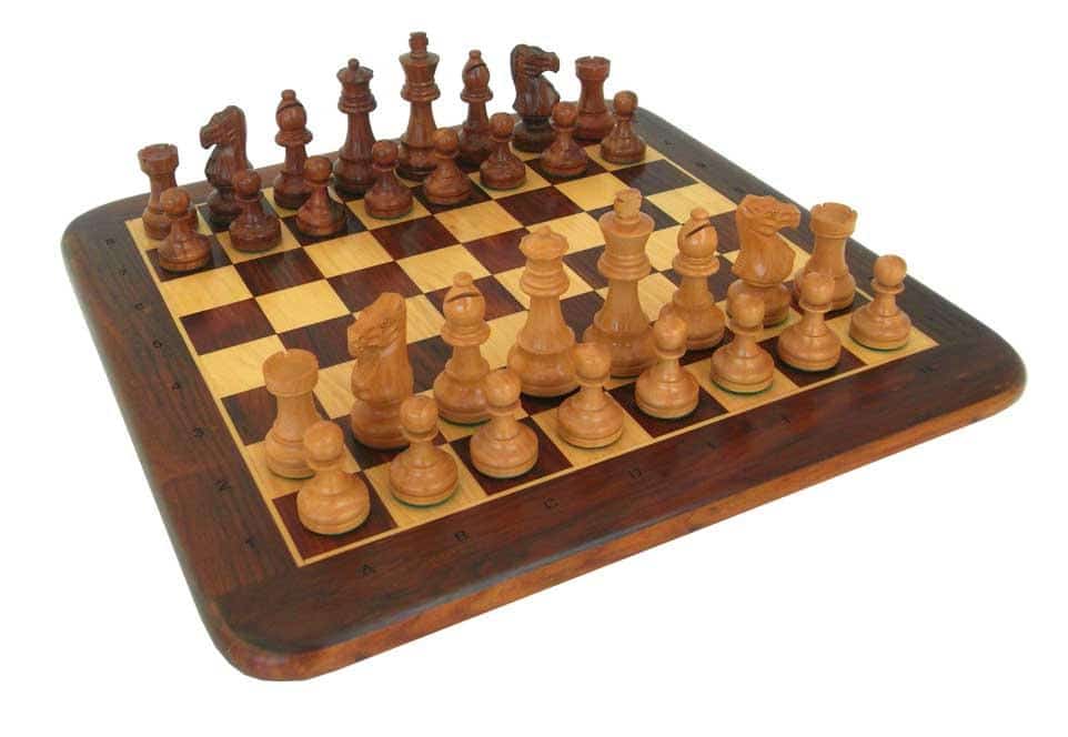 Ensemble Echiquier Alphanumérique & Jeu d’Echecs en Bois de Rose Doré – Classic Collection