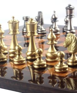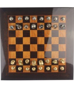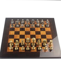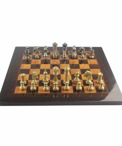 L’ensemble Club II Echiquier en Bois de Loupe de Madrona, Eucalyptus et Bruyère et Jeu d’Echecs Staunton en Laiton est la combinaison parfaite pour ceux qui recherchent des jeux d’échecs élégants. L’échiquier est fait à la main avec des matériaux de qualité exceptionnelle tels que le bois de loupe de madrona, eucalyptus et bruyère. Sa taille est de 42 x 42 cm, avec des cases de 4 cm, et il est fini avec un laqué fait à la main. Le jeu d’échecs comprend 32 pièces en laiton massif et le roi mesure 7,4 cm de haut avec un diamètre de base de 2,4 cm. Les pièces sont soigneusement sculptées et ciselées à la main. Offrant une fabrication européenne de qualité, l’ensemble Club II Echiquier en Bois de Lou