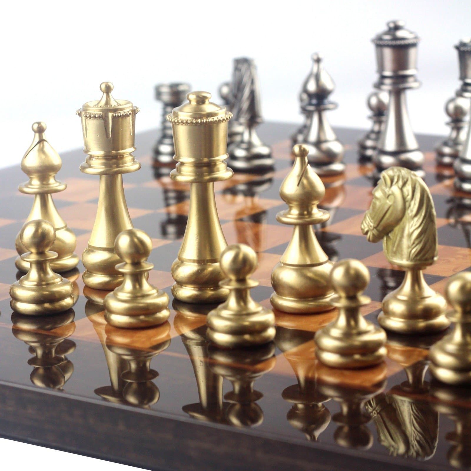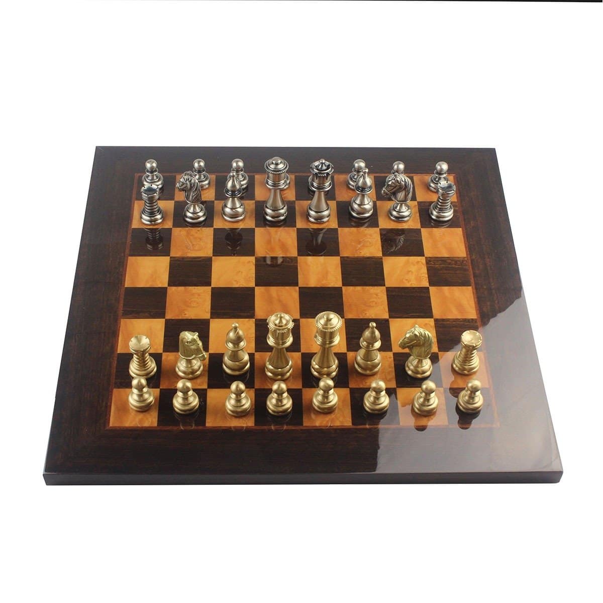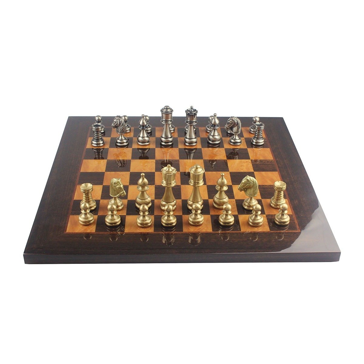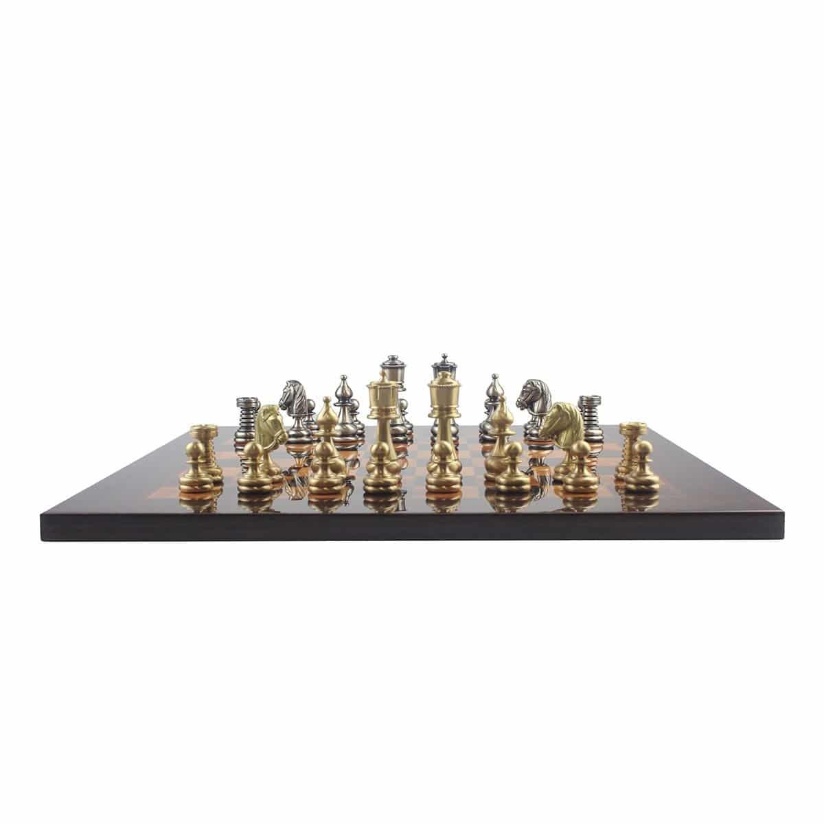 Ensemble Echiquier Bois Madrona Eucalyptus Bruyère + Jeu d’Echecs Staunton Laiton – Club II