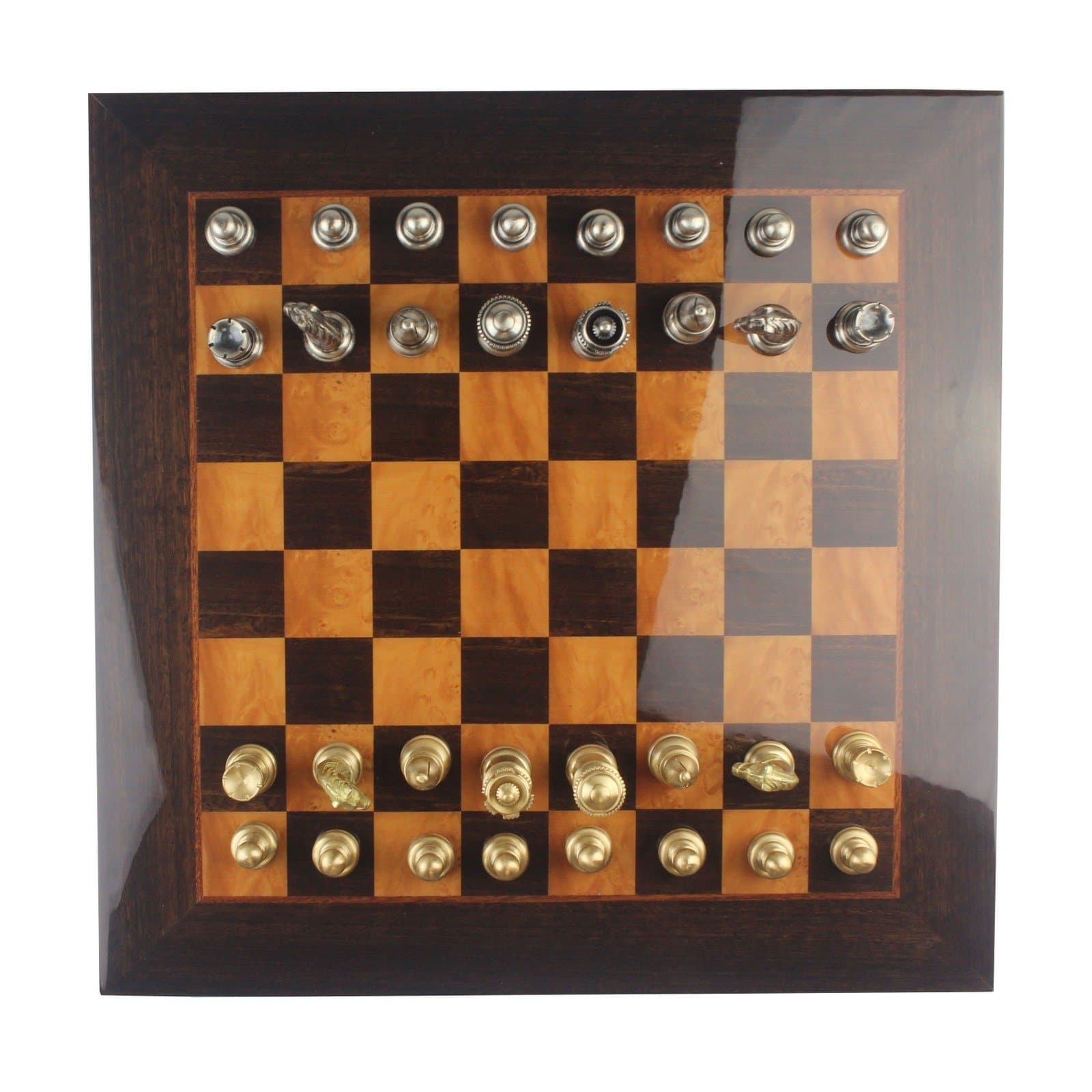 Ensemble Echiquier et Jeu d’Echec Windsor Cocoa Burl en Bois d’Ebène, d’Erable et de Buis