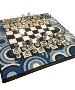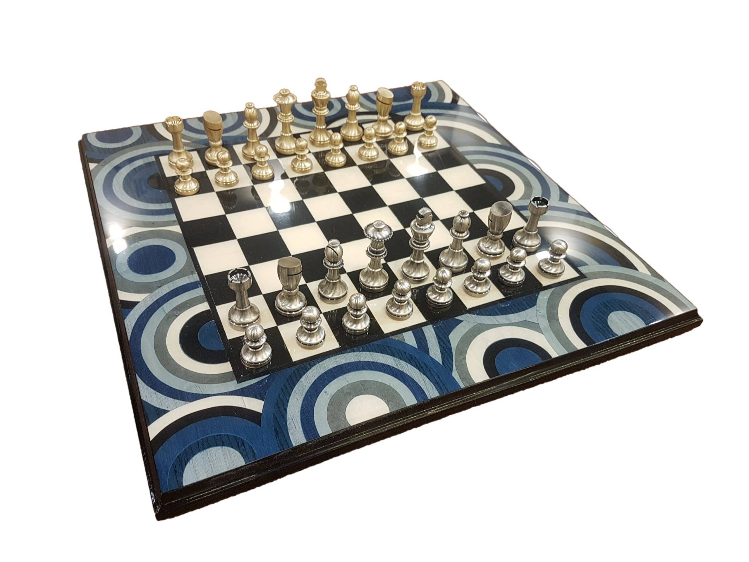 Ensemble Echiquier en Bois d’Erable Bleu Satiné & Jeu d’Echecs en Bois de Buis – Broadbase