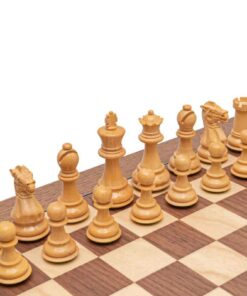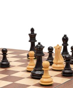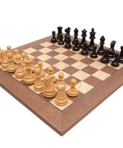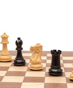 Ensemble Echiquier en Bois de Noyer et Erable et Jeu d’Echecs en Bois de Buis Ebonisé – Vieil Anglais III