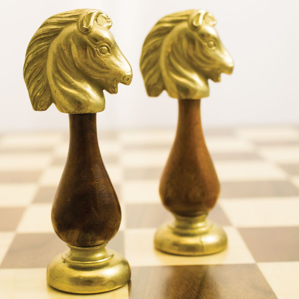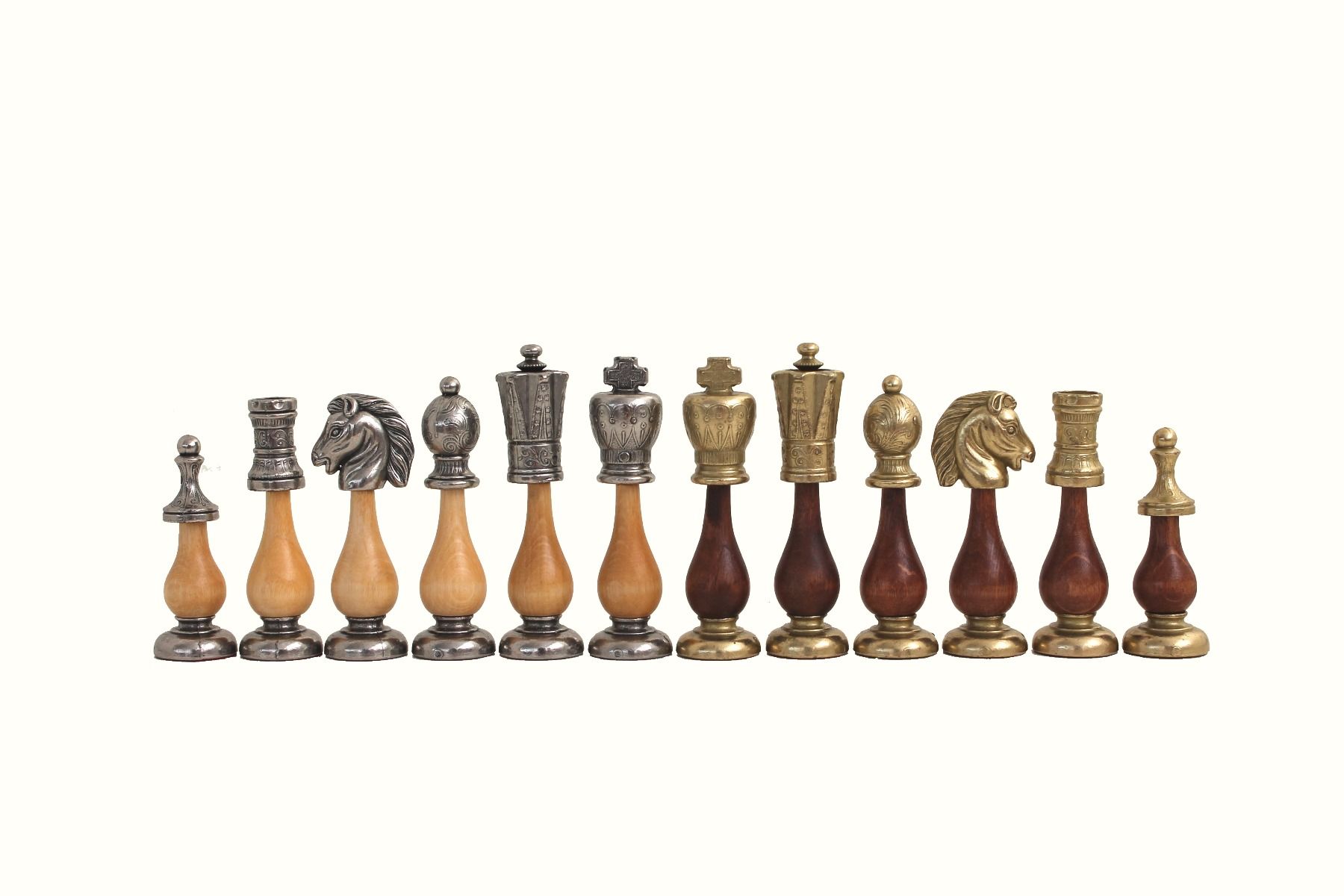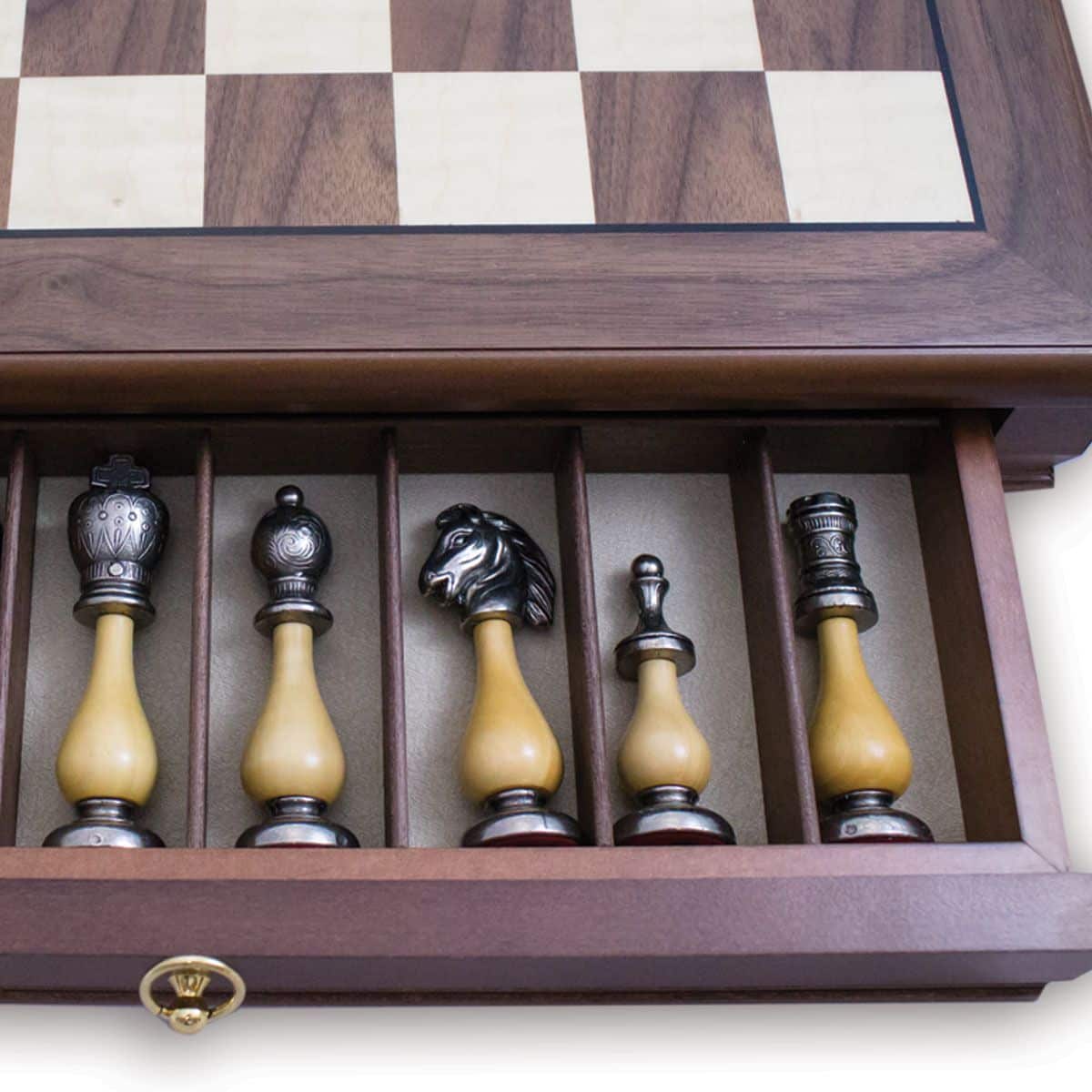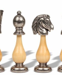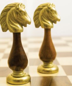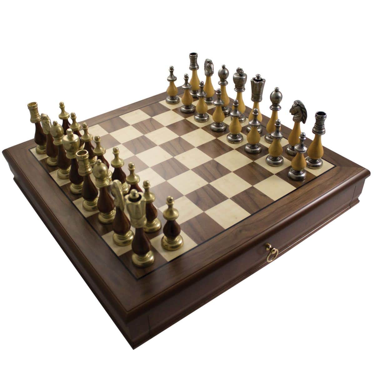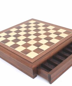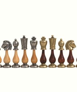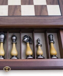 Ensemble Echiquier en Bois de Noyer et Jeu d’Echecs en Métal et Bois – Arabic Tilleul