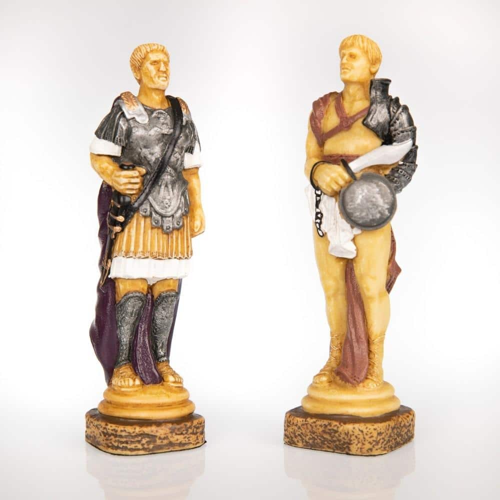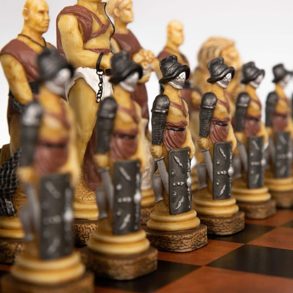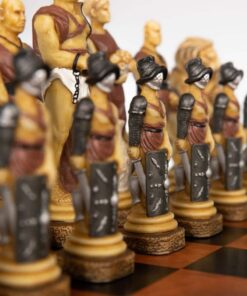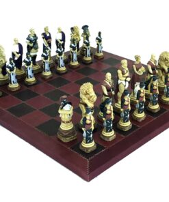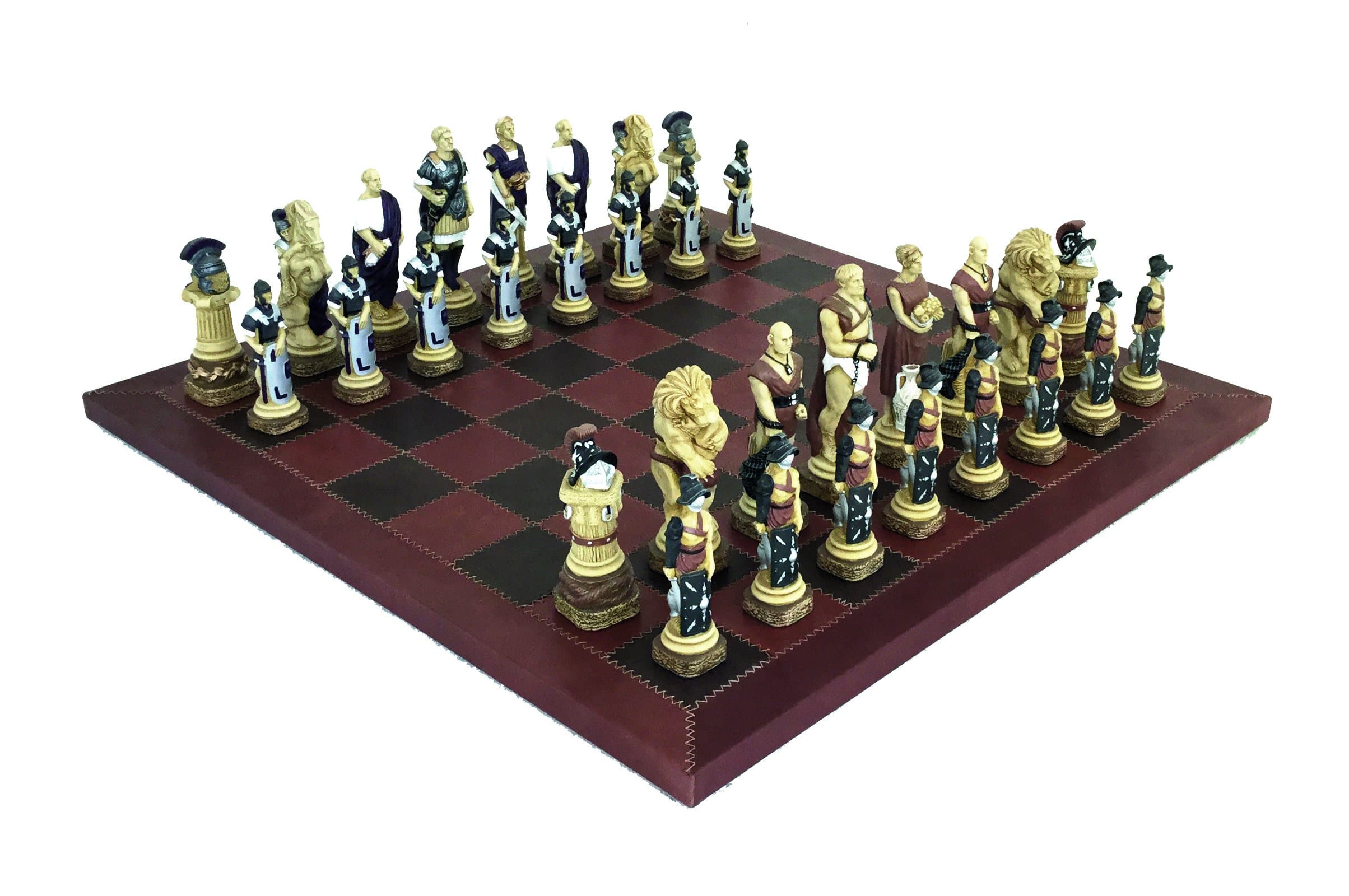 Ensemble Echiquier en Cuir Véritable et Jeu d’Echecs en Résine Peinte à la Main Spartacus I – Jeu d’échecs de Luxe pour Enfants et Adultes