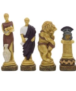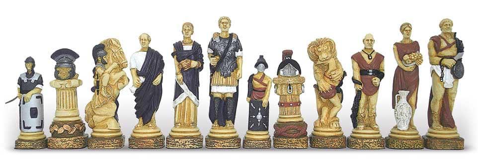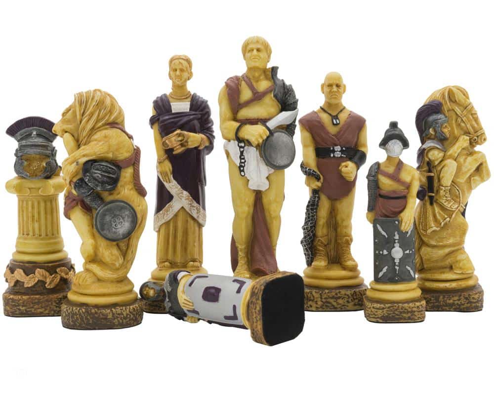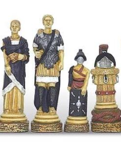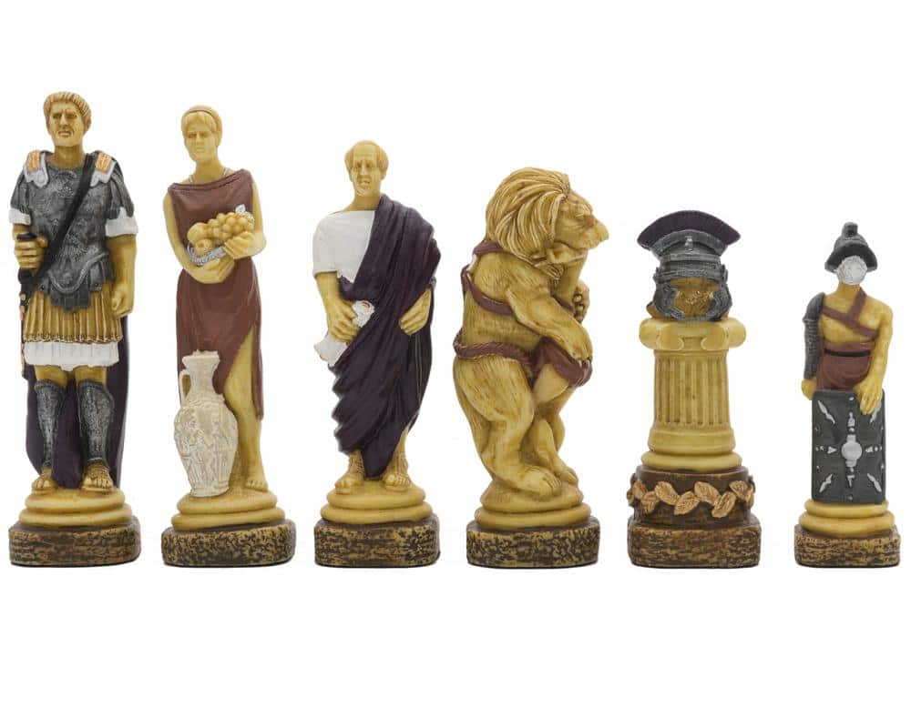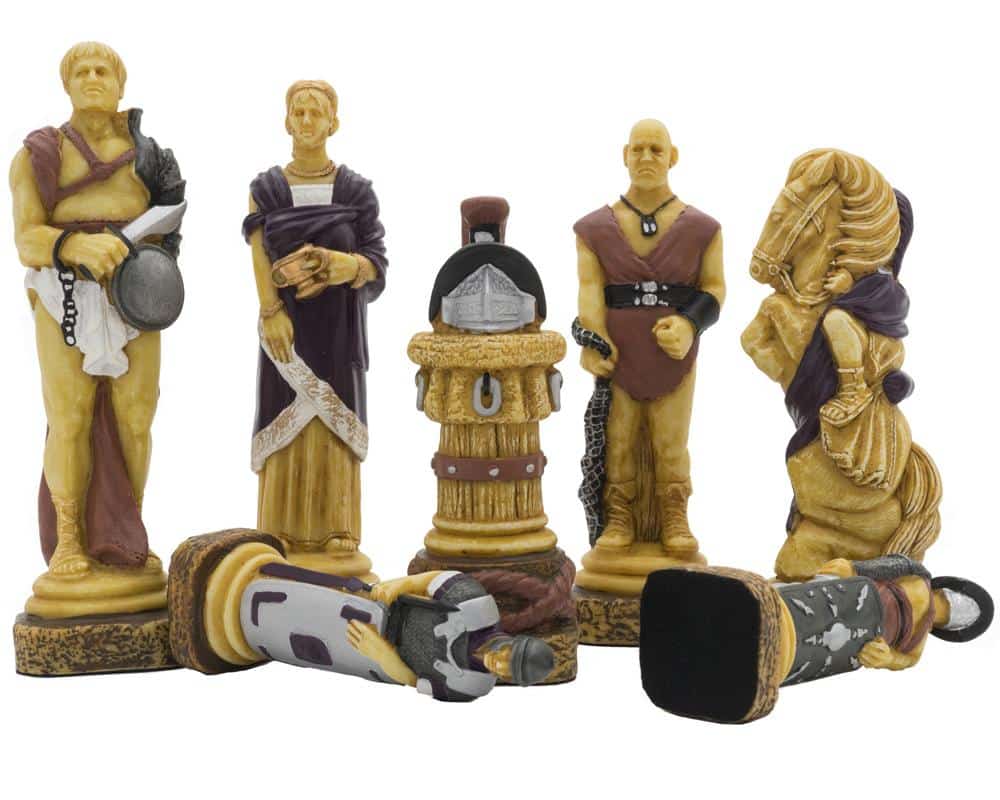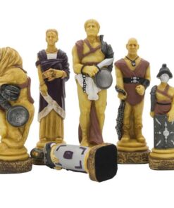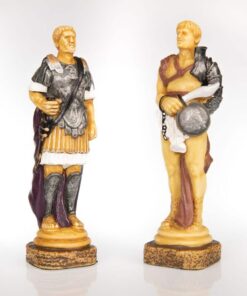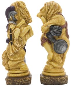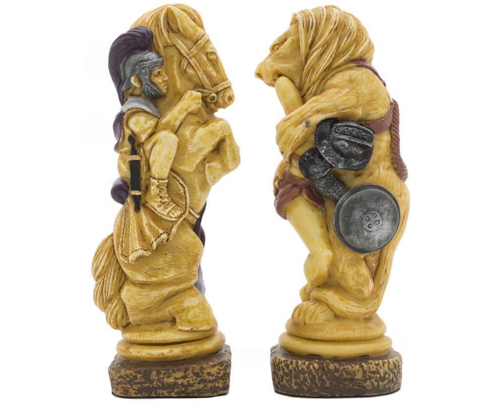 Ensemble Echiquier en Cuir Véritable et Jeu d’Echecs en Résine Peinte à la Main Spartacus I – Jeu d’échecs de Luxe pour Enfants et Adultes