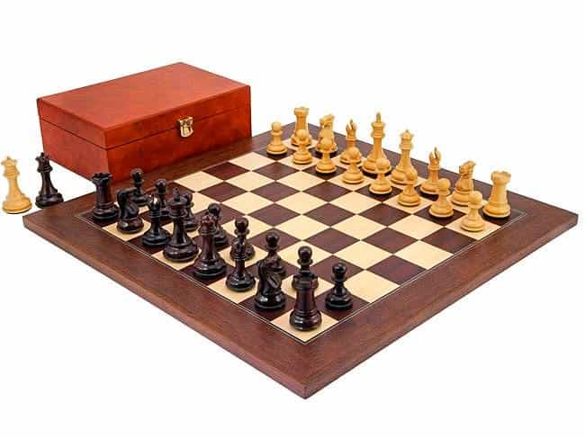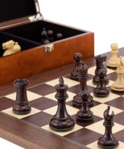 Ensemble Echiquier et Jeu d’Echec en Bois de Rose Doré Windsor Montgoy et Racine de Palissandre