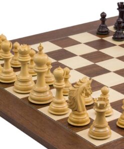 Ensemble Echiquier et Jeu d’Echec Windsor Cocoa Burl en Bois d’Ebène, d’Erable et de Buis