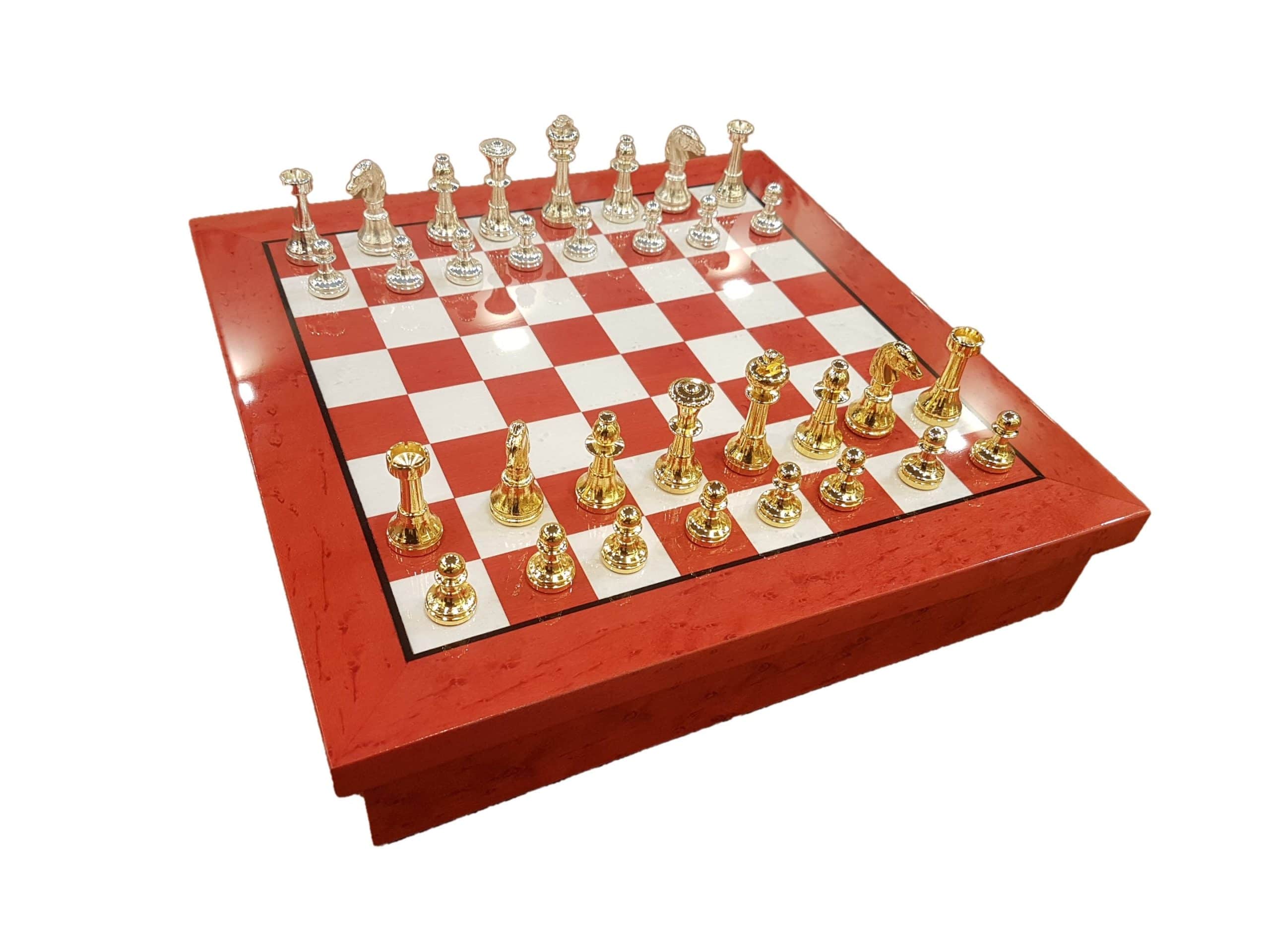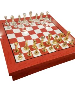 Ensemble Echiquier Moderne en Bois et Pièces d’Echecs en Laiton Plaqué Or et Argent – Idéal pour Les Petits Joueurs