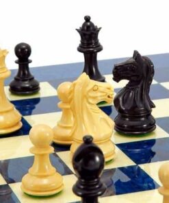 Ensemble Fierce Knight Echiquier en Racine d’Erable Bleu et Jeu d’Echecs en Bois d’Ebène et de Buis – Jouer à l’Echiquier en Bois Naturel et de Haute Qualité