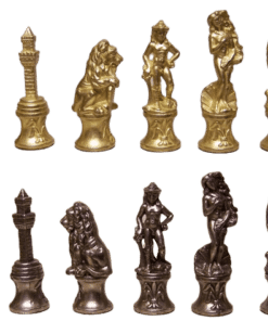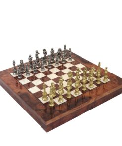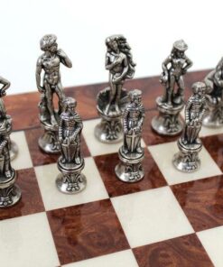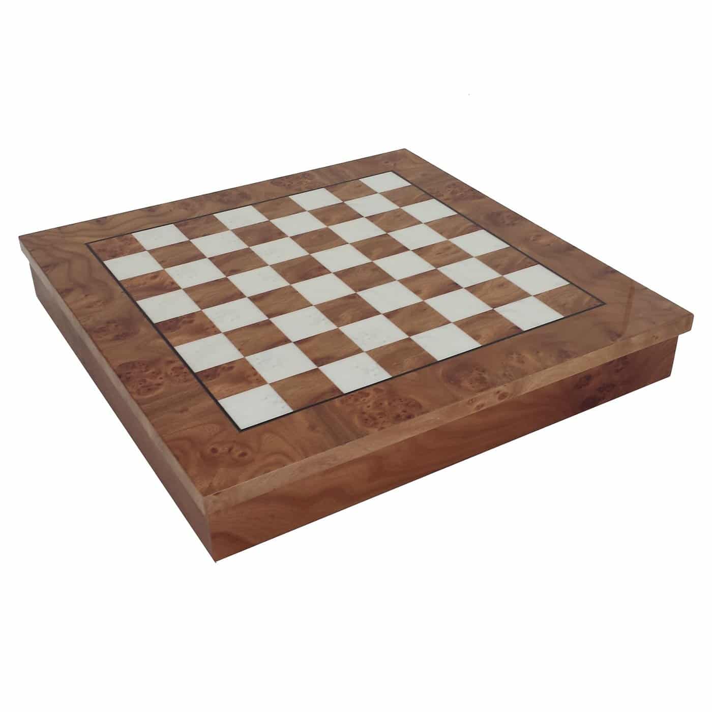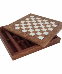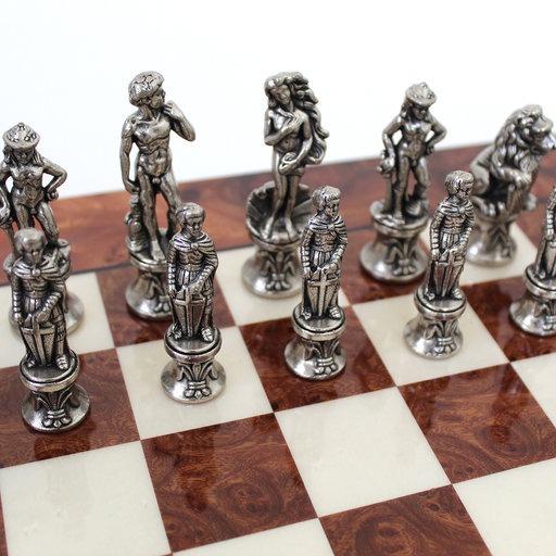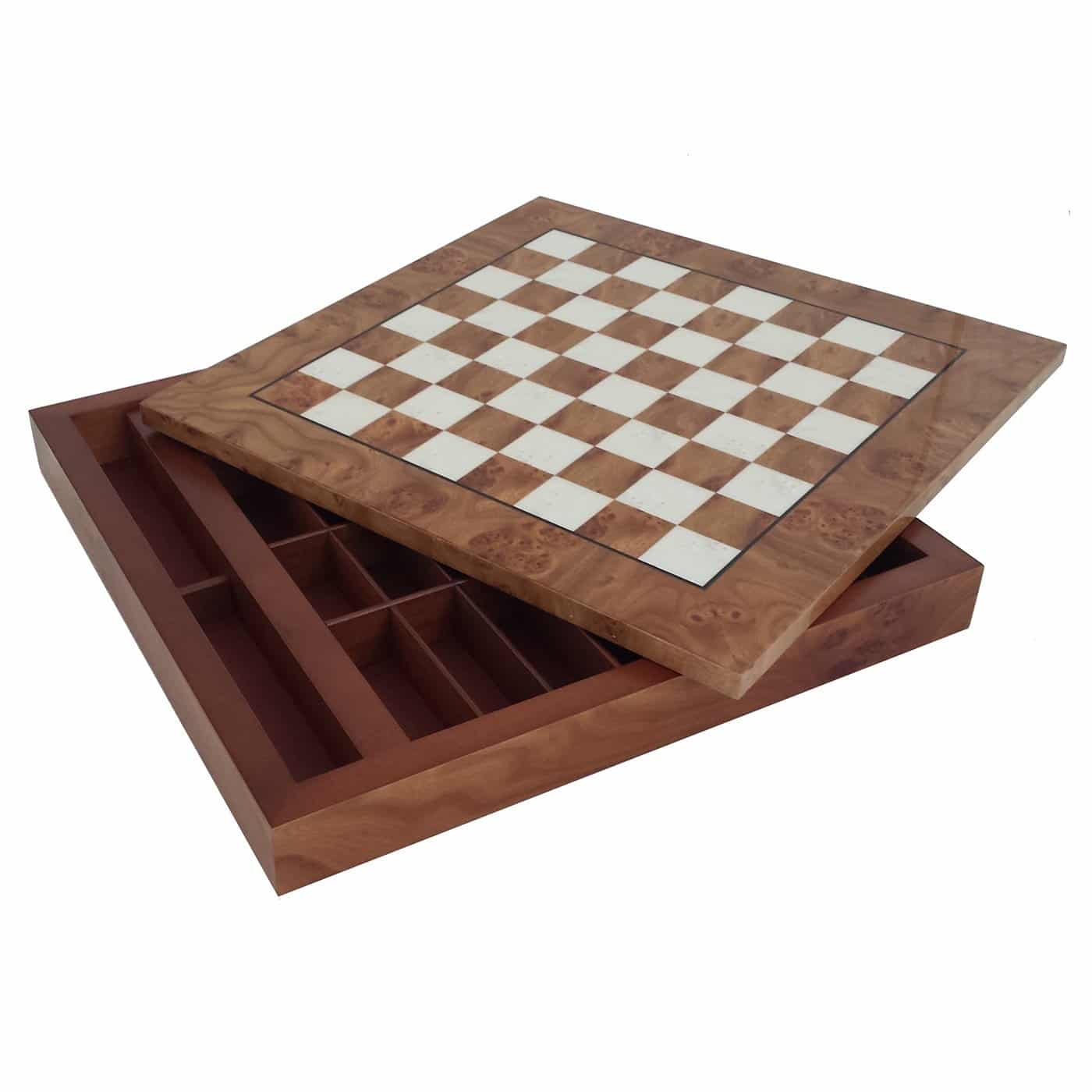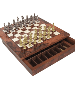 Ensemble Florentine II Echiquier en Bois de Bruyère avec Rangement et Pièces d’Echecs en Métal | Echiquier Bois et Métal de Qualité Supérieure