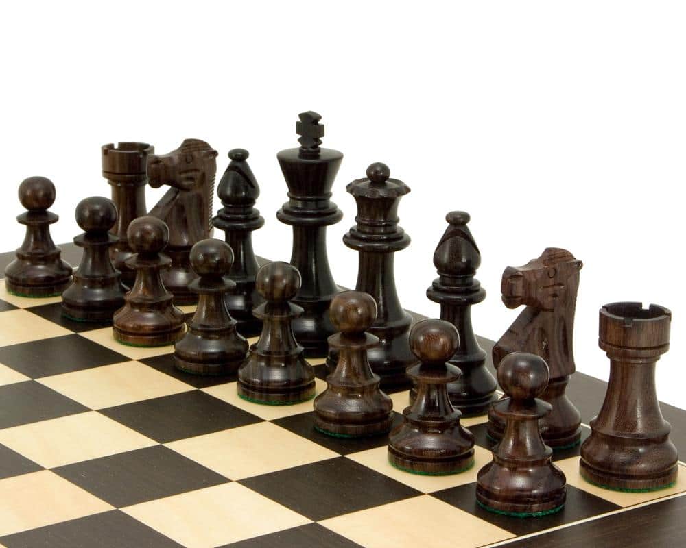 Ensemble French Knight II Echiquier en Bois d’Erable & Wenge et Pièces d’Echecs en Bois de Rose – Un Jeu Classique et Elegant