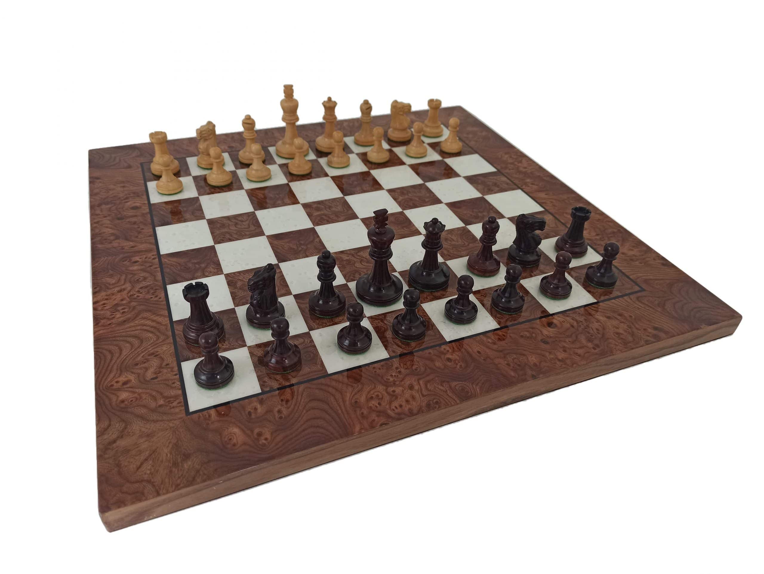 Ensemble Intemporel Echiquier Bois d’Orme et Bruyère et Jeu d’Echecs Bois de Rose