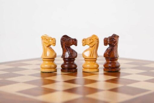 Ensemble Echiquier Bois d’Erable et Noyer et Jeu d’Echecs Bois Rose Doré et Buis – Sicilien