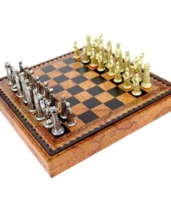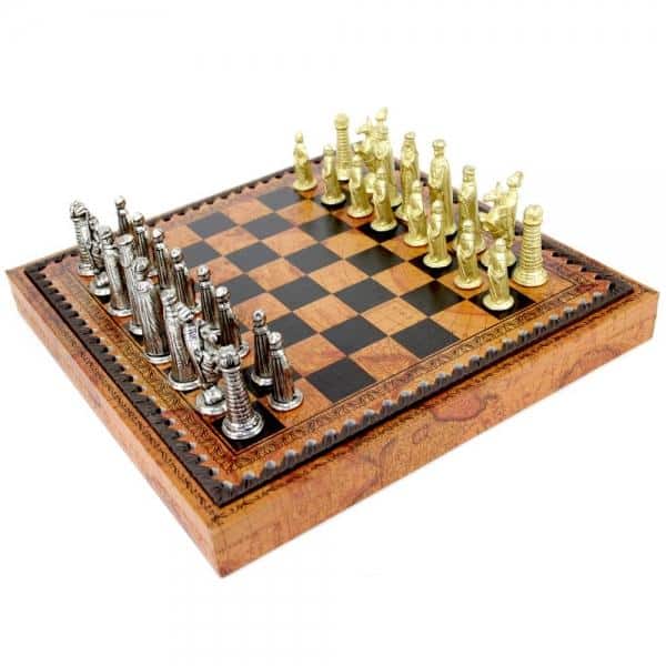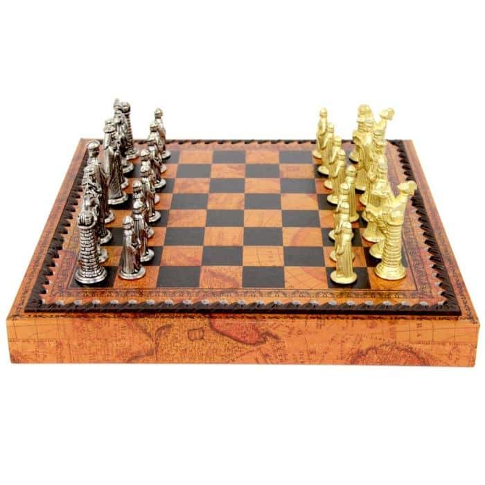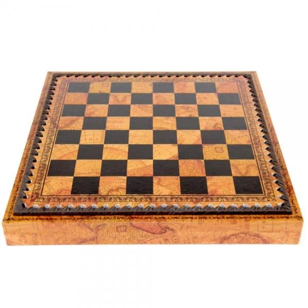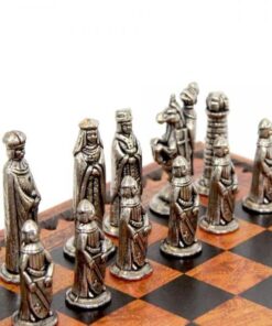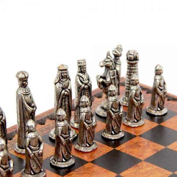 L’ensemble médieval Echiquier en Similicuir & Jeu d’Echecs en Métal Massif offre une excellente qualité et une finition exceptionnelle. L’échiquier est fabriqué en similicuir de qualité supérieure, sa taille est de 28 x 28 x 3,5 cm et ses cases mesurent 2,8 cm. Il a un aspect bois et est doté d’un compartiment de rangement individuel intégré. Le jeu d’échecs est fabriqué en métal massif et chaque pièce est sculptée et ciselée à la main. La hauteur du roi est de 6 cm et son diamètre de base est de 2,1 cm. Ces produits sont fabriqués en Europe pour une qualité garantie. Ces produits sont parfaits pour les passionnés d’échecs et pour les collectionneurs. Offrez-vous une pièce unique et faites plaisir à ceux que vous aimez. Ce produ