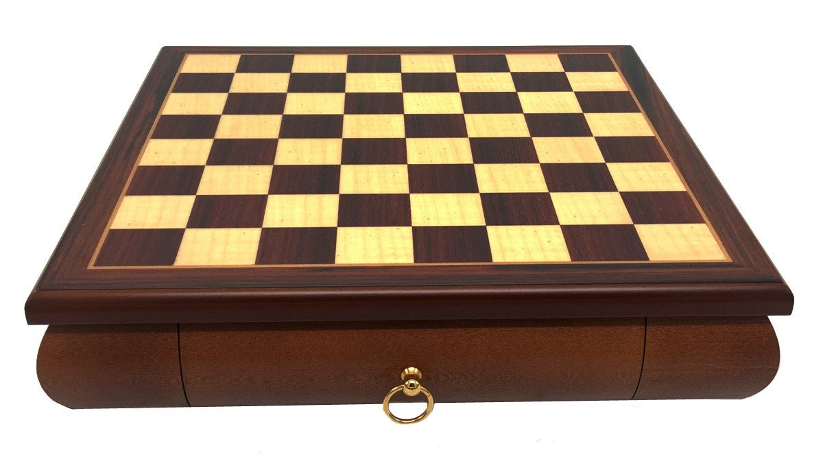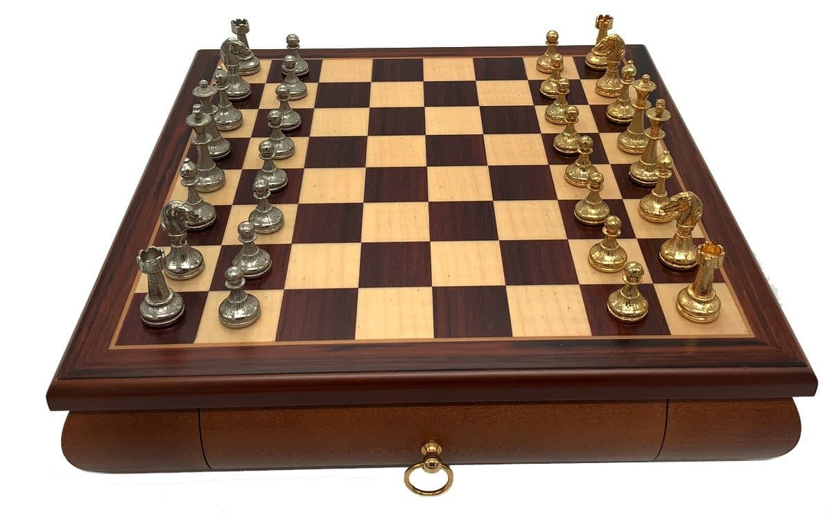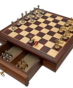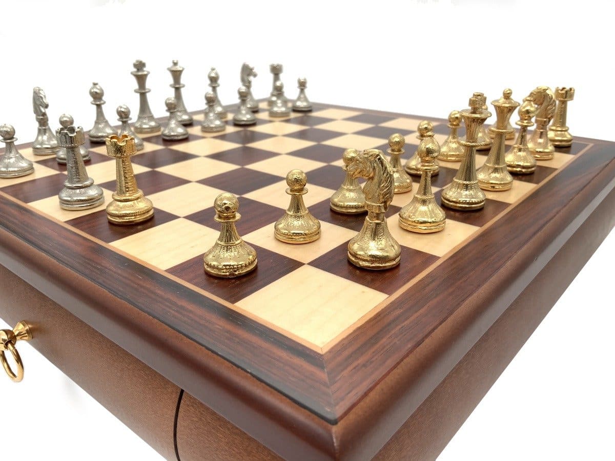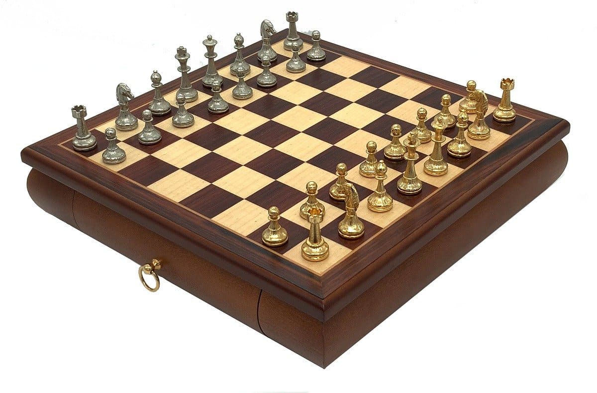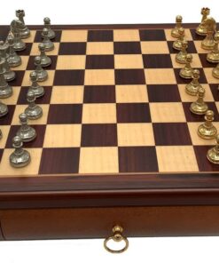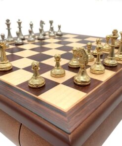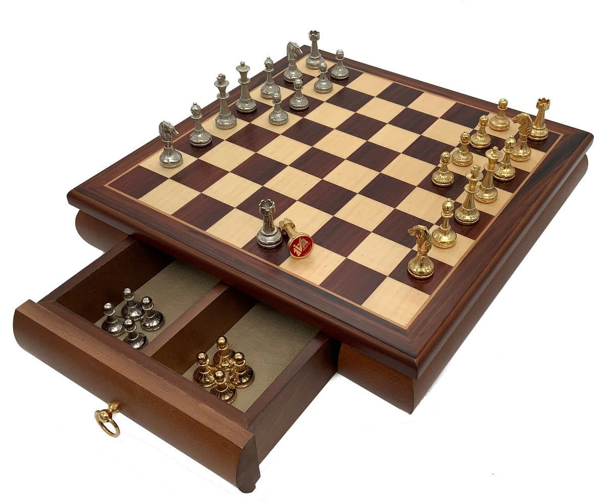 Ensemble Mignon Flower VII Echiquier en Bois d’Erable et Acajou Avec Rangement et Jeu d’Echecs Métal Plaqué Or et Argent – Le Cadeau Parfait pour les Amateurs d’Échecs