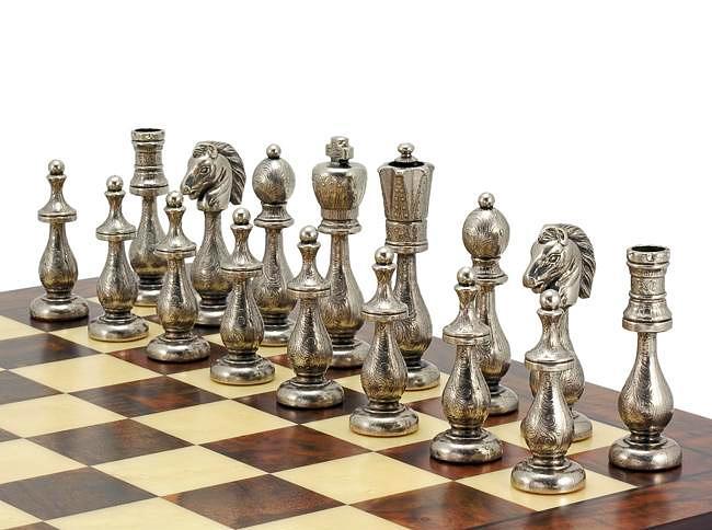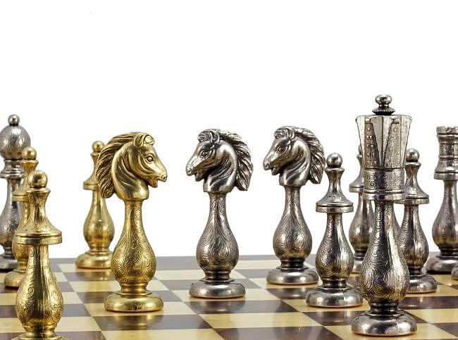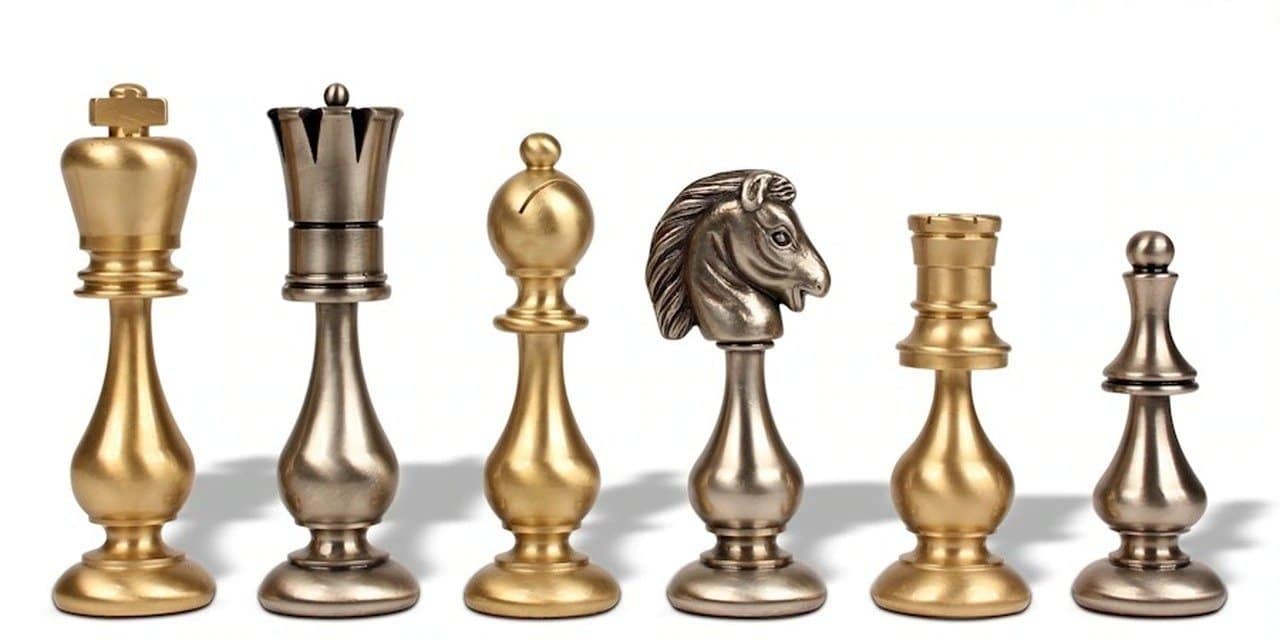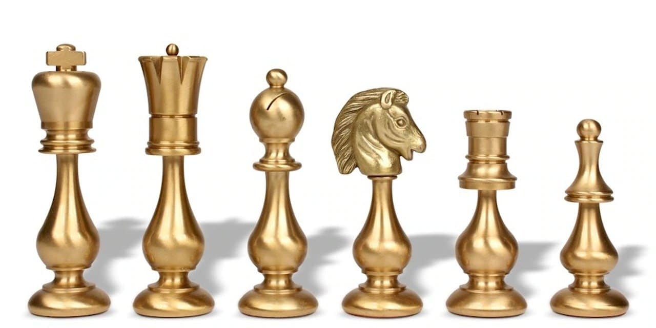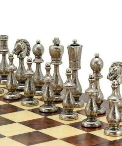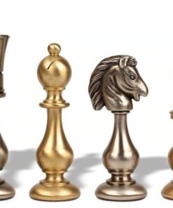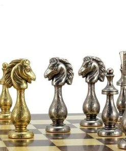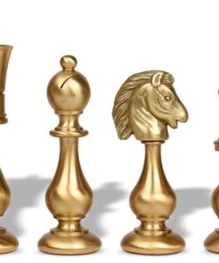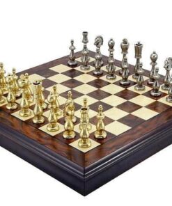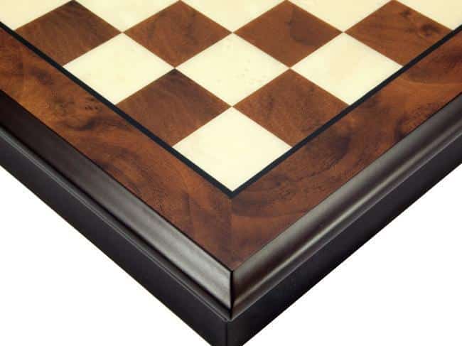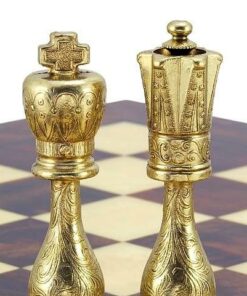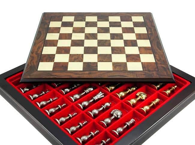 Ensemble Oriental Echiquier de Bois de Noyer & Erable avec Compartiment de Rangement & Jeu d’Echecs en Laiton