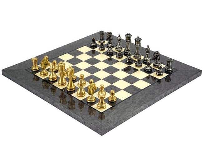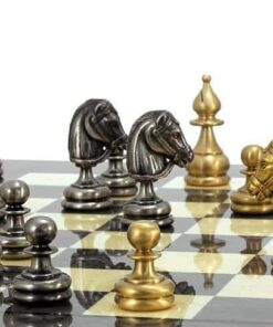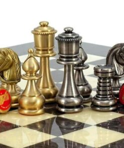 L’ensemble Perse II Echiquier en Bois d’Erable & Jeu d’Echecs en Laiton Massif est un produit de qualité premium fabriqué en Europe. L’échiquier est fait à la main en bois d’érable et mesure 42 x 42 cm avec des cases de 4 cm de côté. Le jeu d’échecs comprend 32 pièces sculptées, ciselées et polies à la main en laiton massif, dont le roi mesure 7,4 cm de haut et 2,4 cm de diamètre de base. La base est feutrée pour plus de stabilité et de protection. Un chef d’oeuvre unique et durable qui ravira les joueurs et les collectionneurs. Un produit qui offre une expérience de jeu inoubliable. Un must pour tous les amoureux du jeu d’échecs. Commandez le vôtre aujourd’hui.