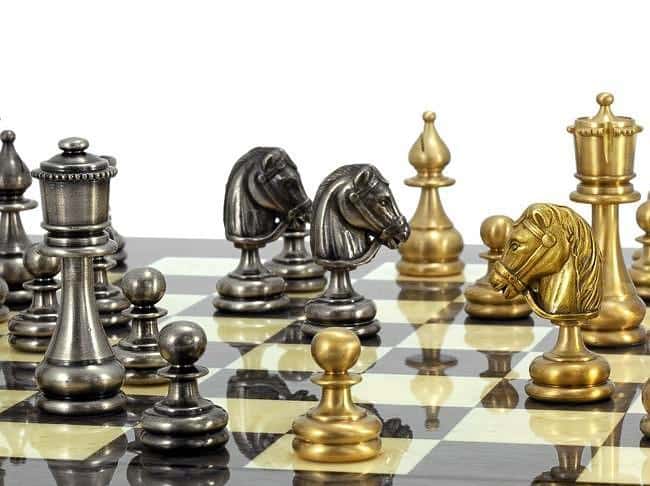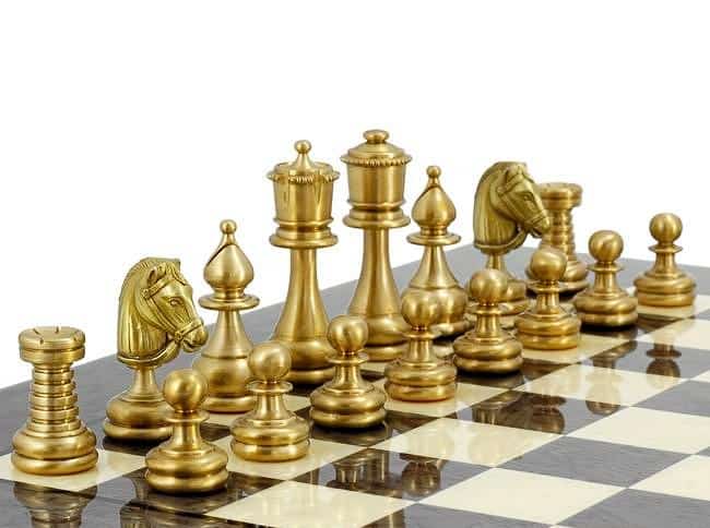 Ensemble Perse II Echiquier en Bois d’Erable & Jeu d’Echecs en Laiton Massif – Echiquier de Luxe pour Collectionneurs et Joueurs Professionnels