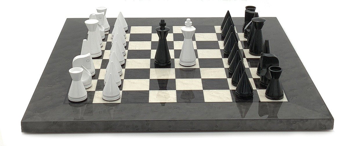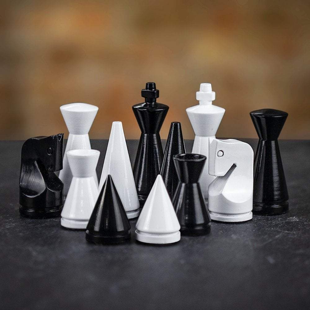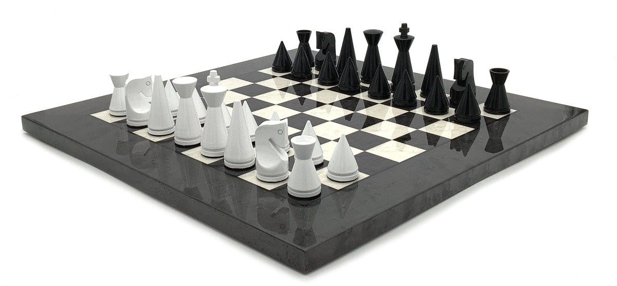 Ensemble Pyramide Moderne Gris Echiquier en Bois de Bruyère et d’Erable & Jeu d’Echecs en Bois Laqué Noir et Blanc – Idéal pour Jouer aux Échecs!