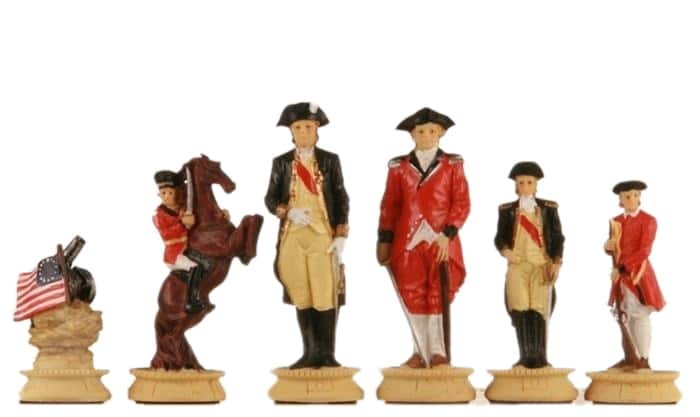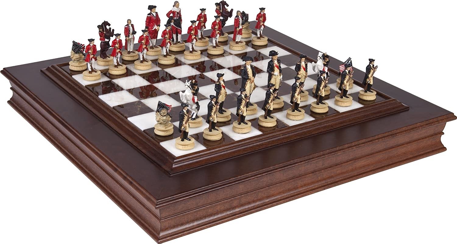 Ensemble Révolution Americaine III – Plateau en Marbre et Jeu d’Echecs en Etain, Echiquier en Bois