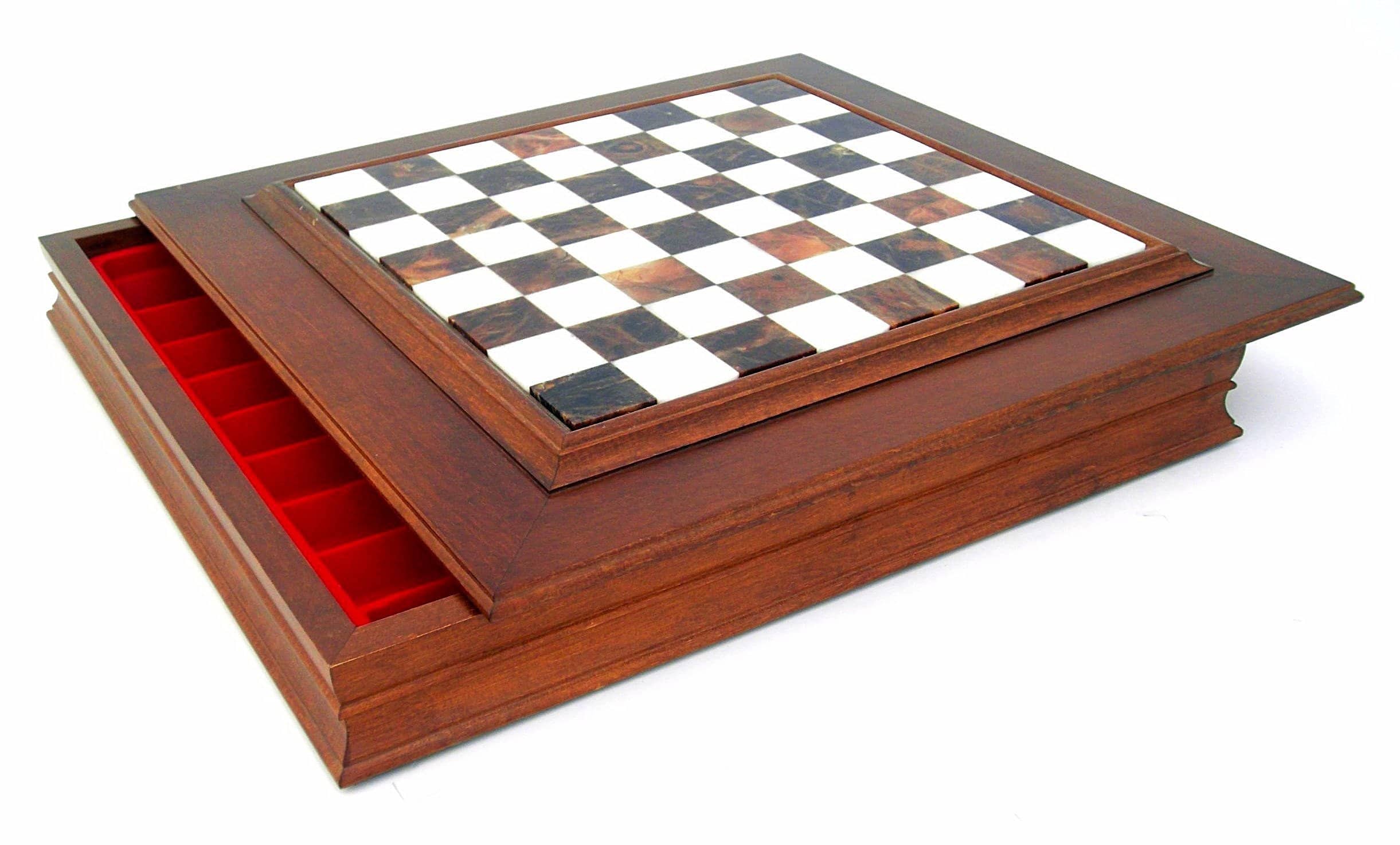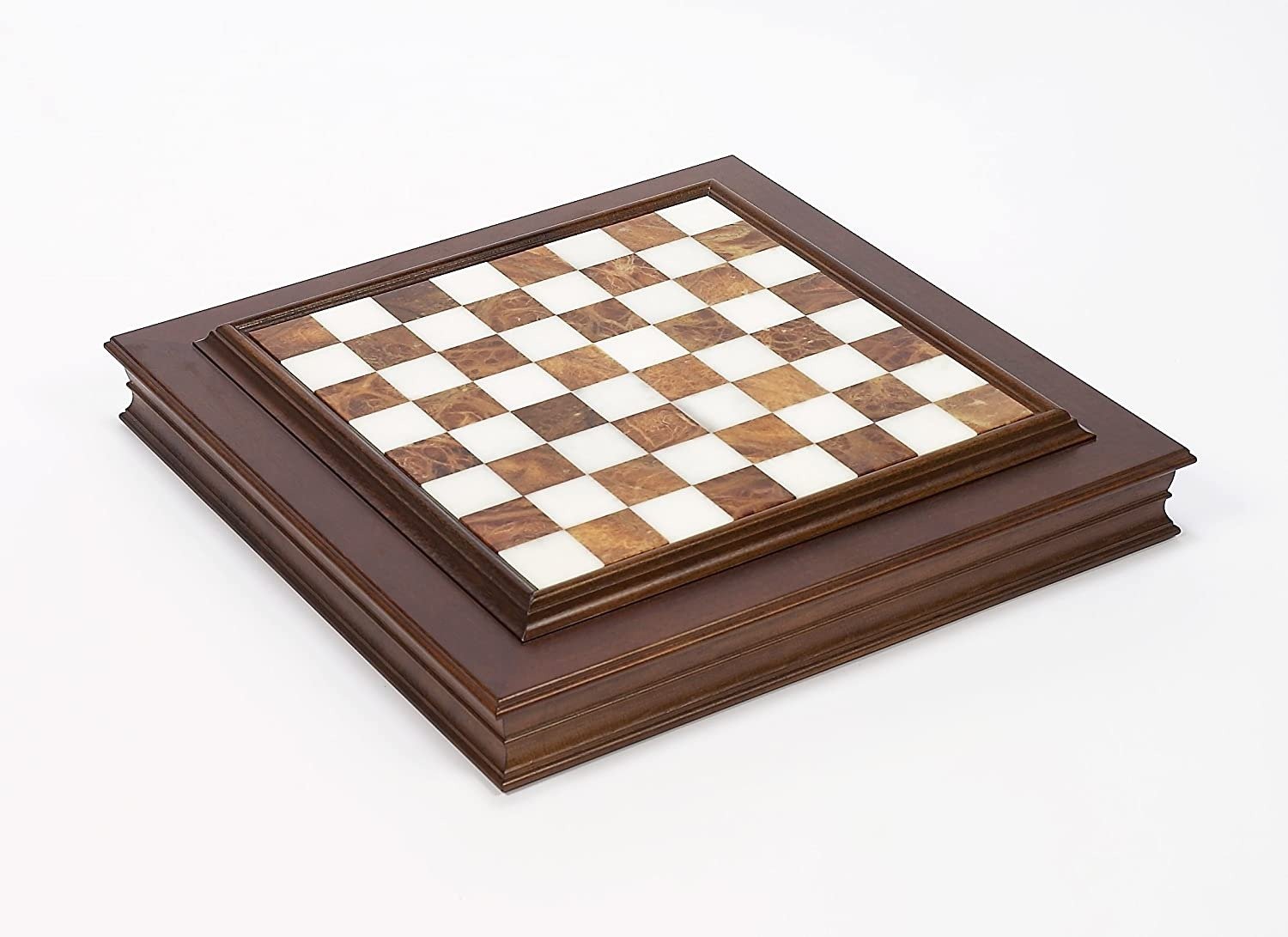 Ensemble Echiquier et Jeu d’Echec Windsor Cocoa Burl en Bois d’Ebène, d’Erable et de Buis