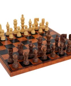 Ensemble Ritz Jeu d’Echecs en Bois et Echiquier en Similicuir – Jeu d’échecs de luxe pour adultes et enfants
