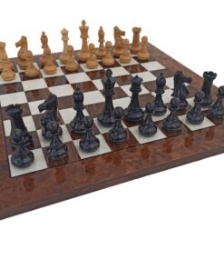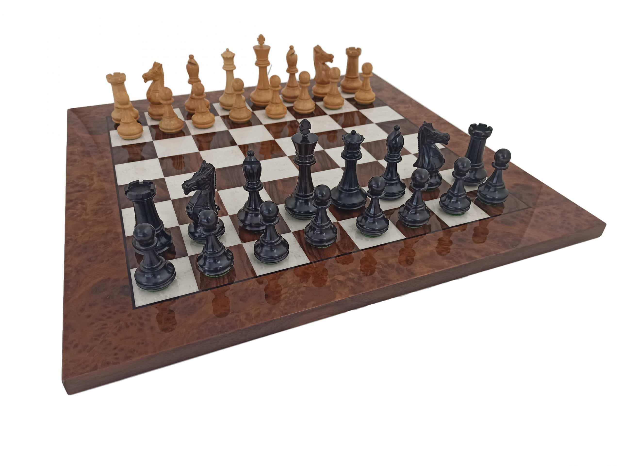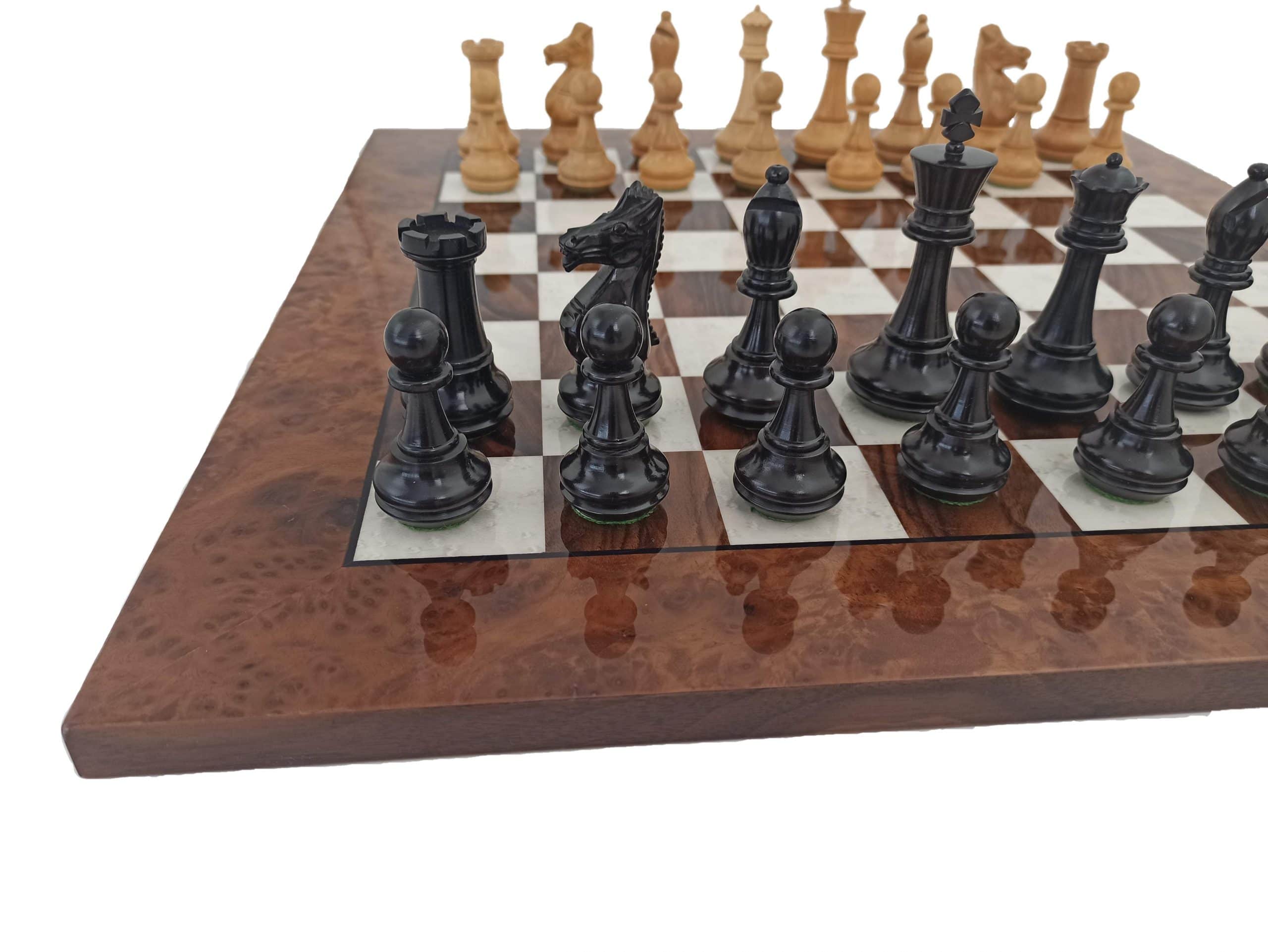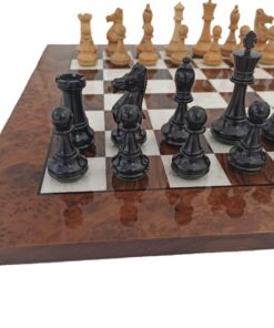 Grand Ensemble de Jeu d’Echecs en Bois de Luxe d’Ebène et Echiquier en Racine de Noyer