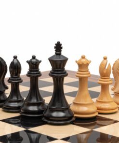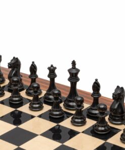 Grand Jeu d’Echecs Chevalier Noir Bois de Buis Ebonisé et Echiquier en Bois d’Anégre Noir et Erable Laqué