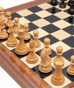 Ensemble Echiquier Bois d’Erable et Noyer et Jeu d’Echecs Bois Rose Doré et Buis – Sicilien
